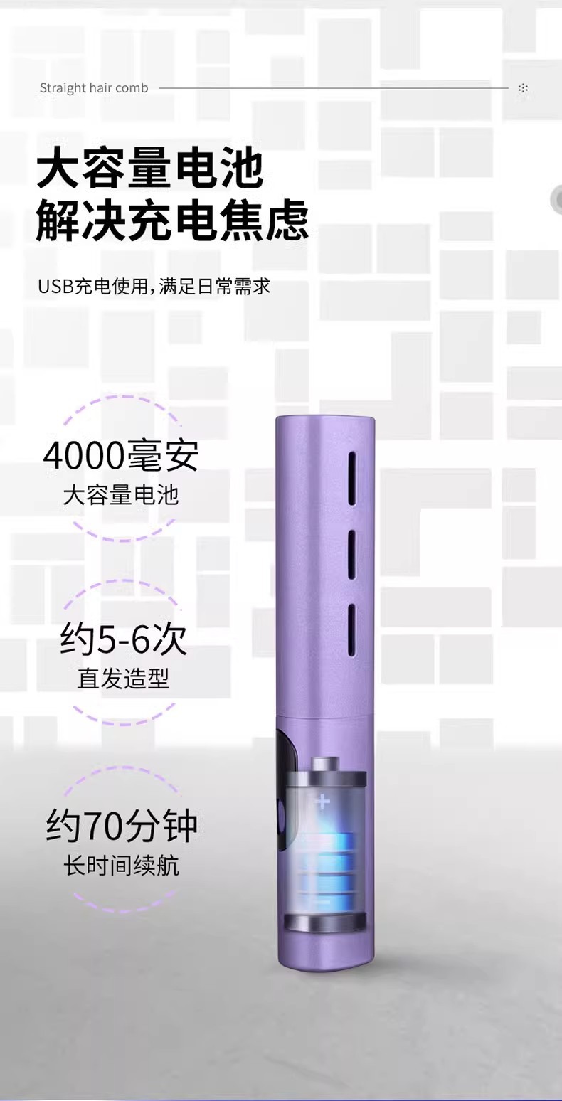 新款液晶款无线直发梳无线直发器小型USB充电便携旅行卷直两用