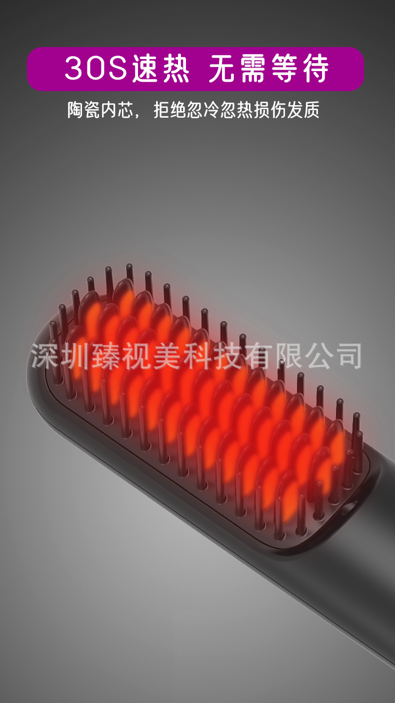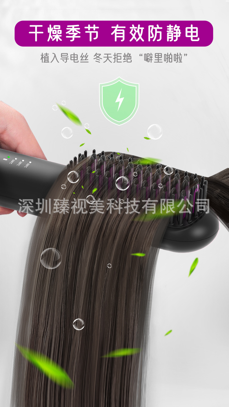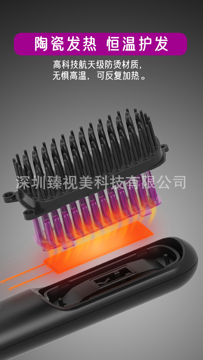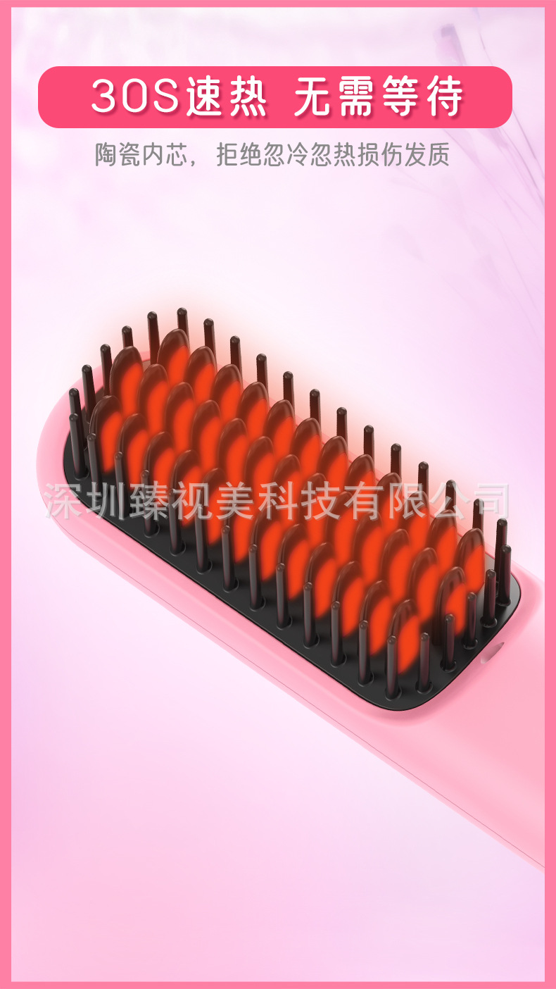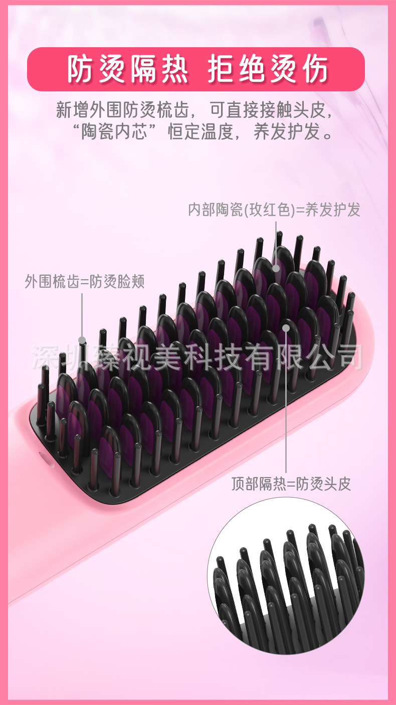 新款充电直发梳负离子直发器卷发两用电卷发梳懒人卷发棒批发厂家
