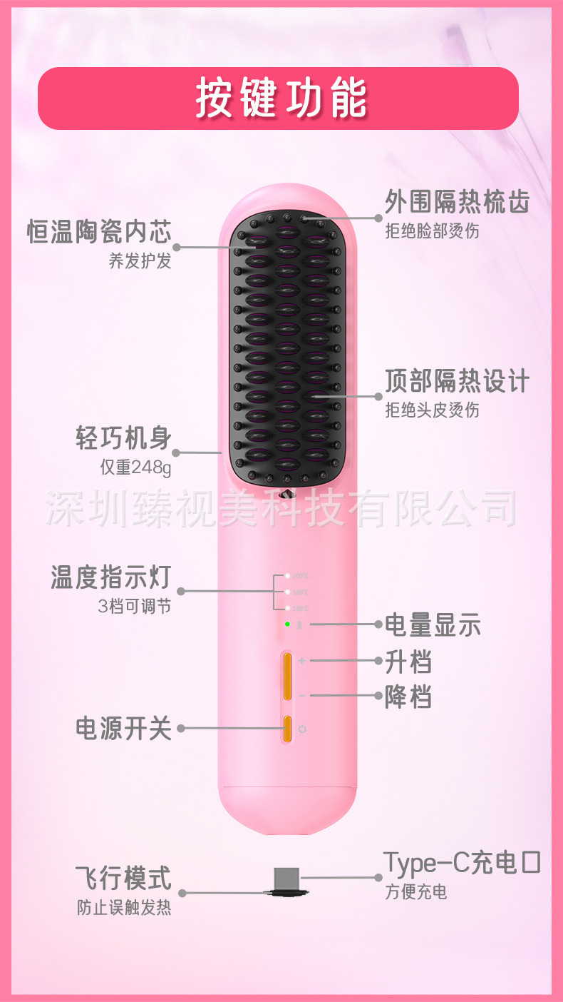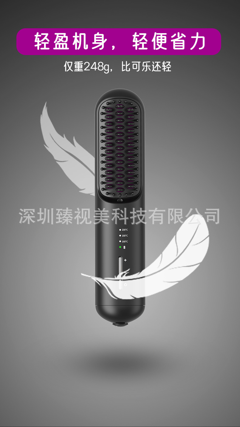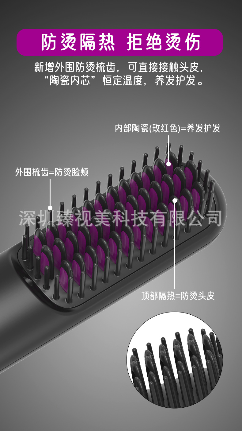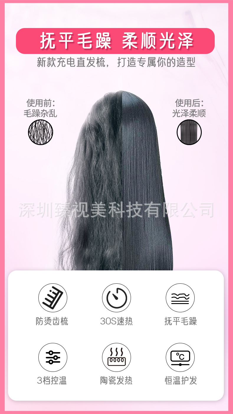 新款充电直发梳负离子直发器卷发两用电卷发梳懒人卷发棒批发厂家