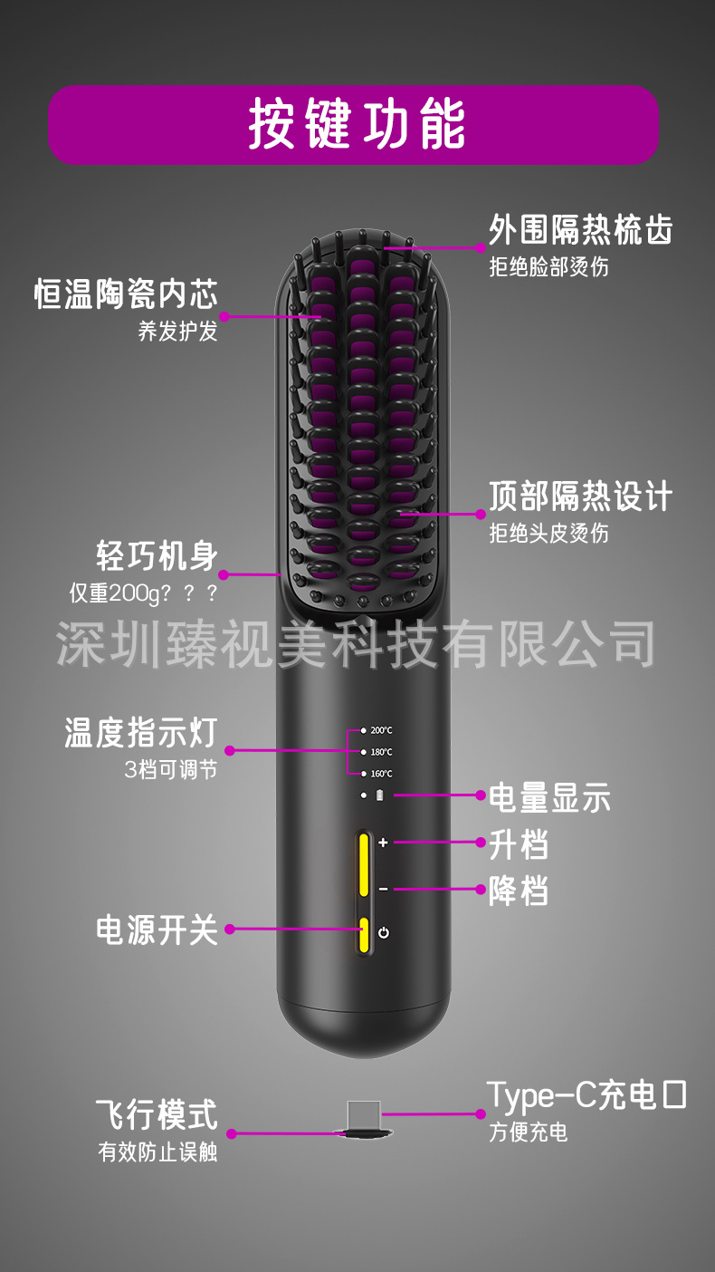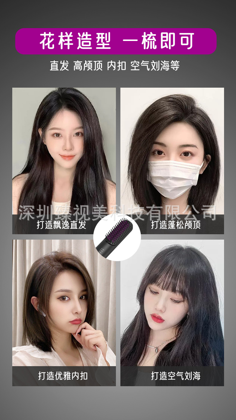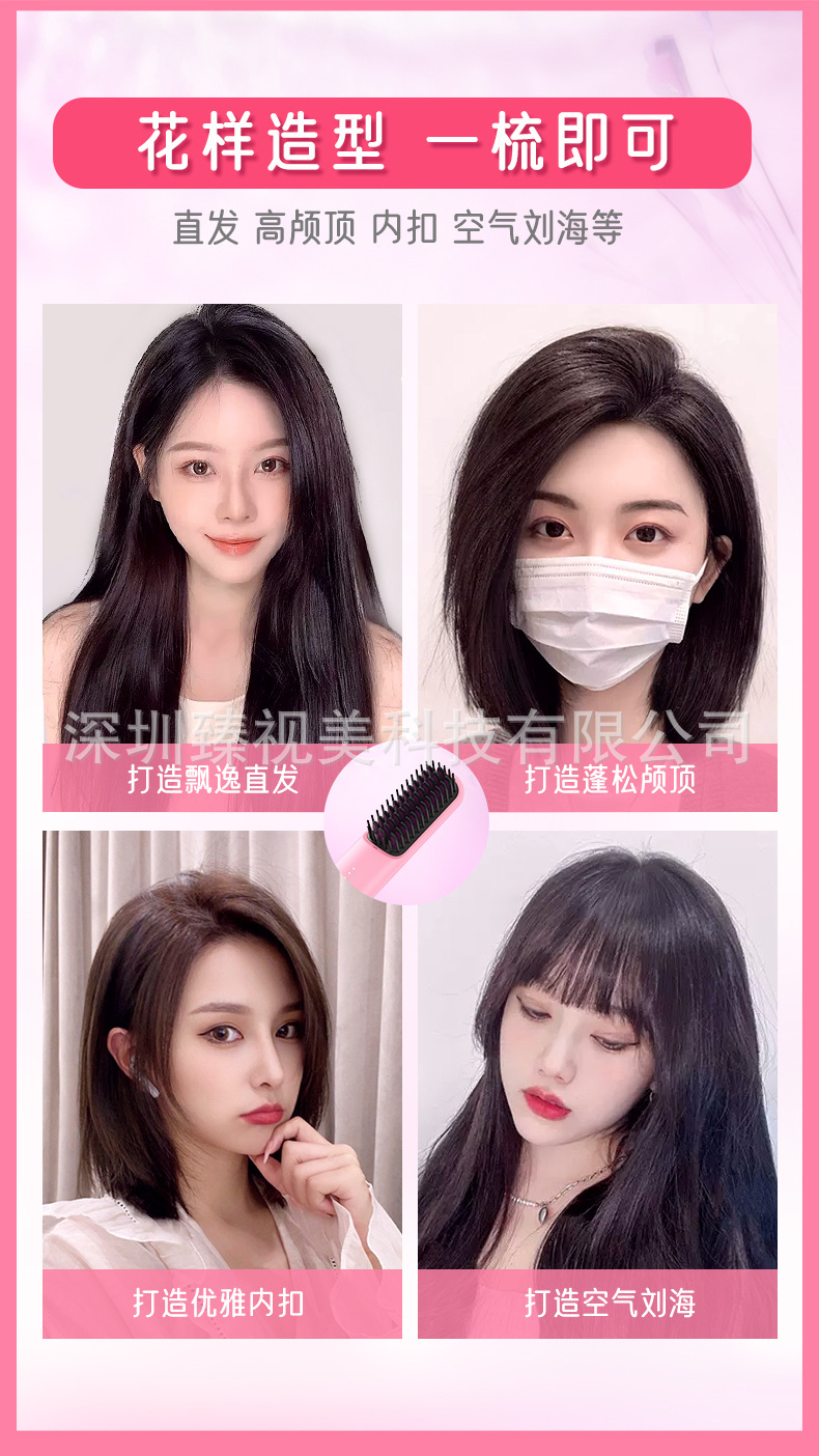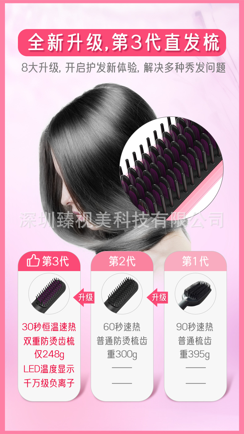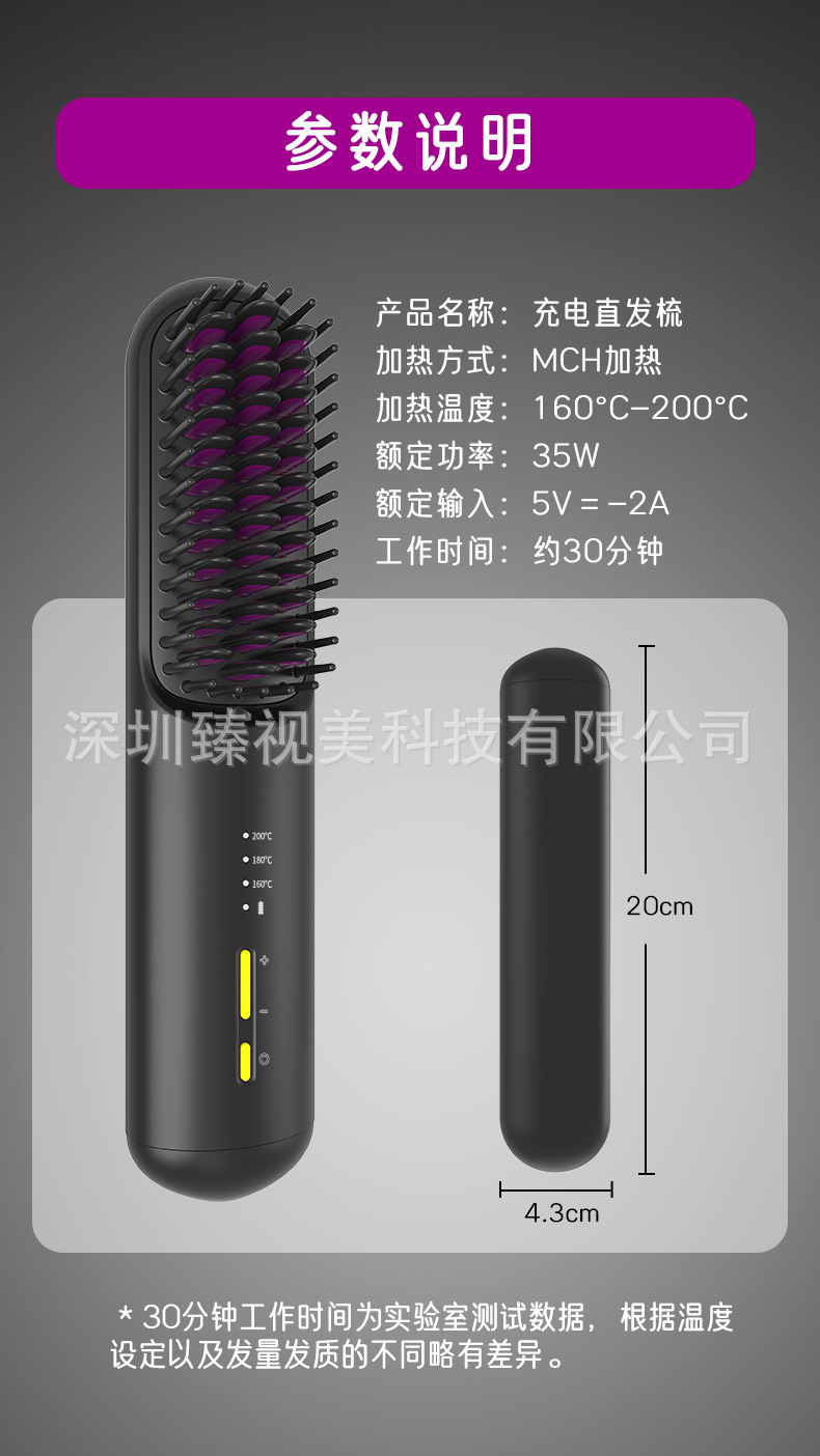 新款充电直发梳负离子直发器卷发两用电卷发梳懒人卷发棒批发厂家