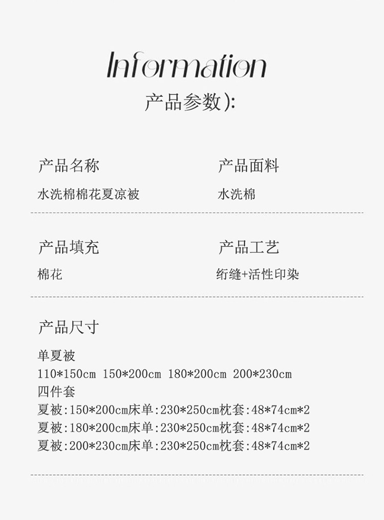 | 180 x200cm summer quilt four-piece set (summer quilt 180*200)(180x200cm夏被四件套(夏被180*200)) | USD $20.24 | 1000 bed available |