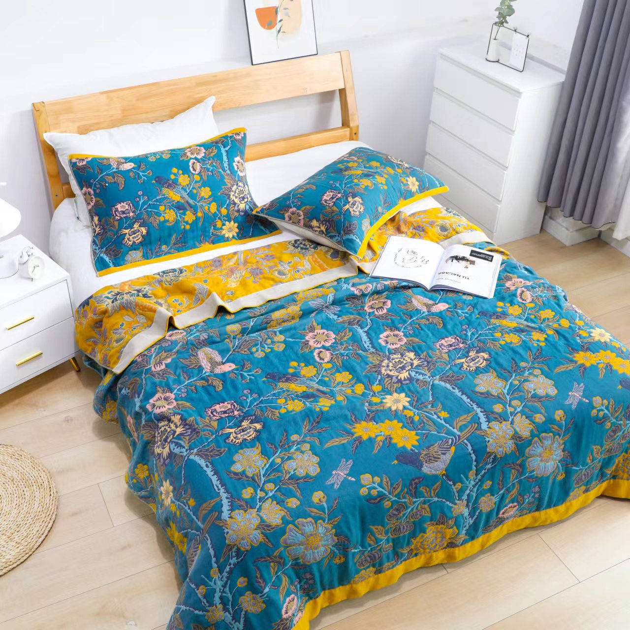 简约纱布加厚全棉毛巾被单双人午睡现代沙发毯柔软卡通空调毯夏凉
