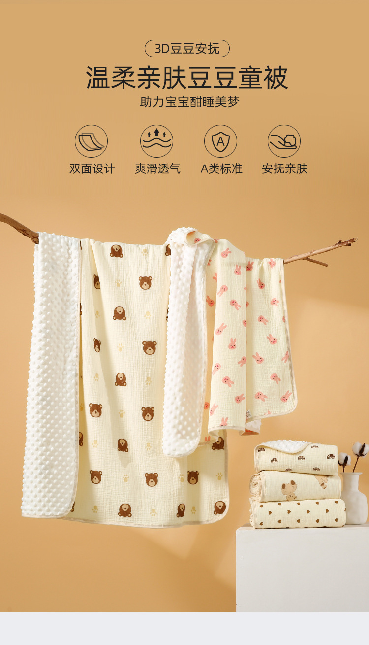 婴儿被子豆豆毯夏季薄款纱布空调被批发儿童棉皱布宝宝盖毯厂家