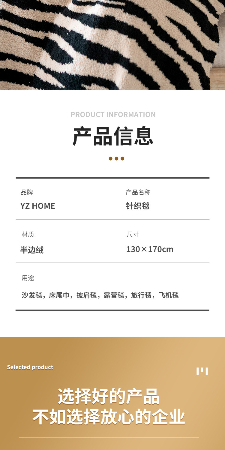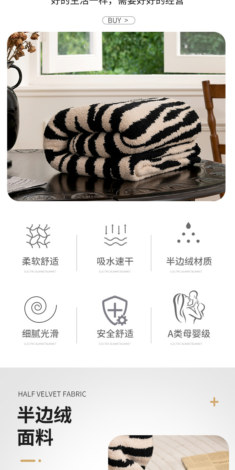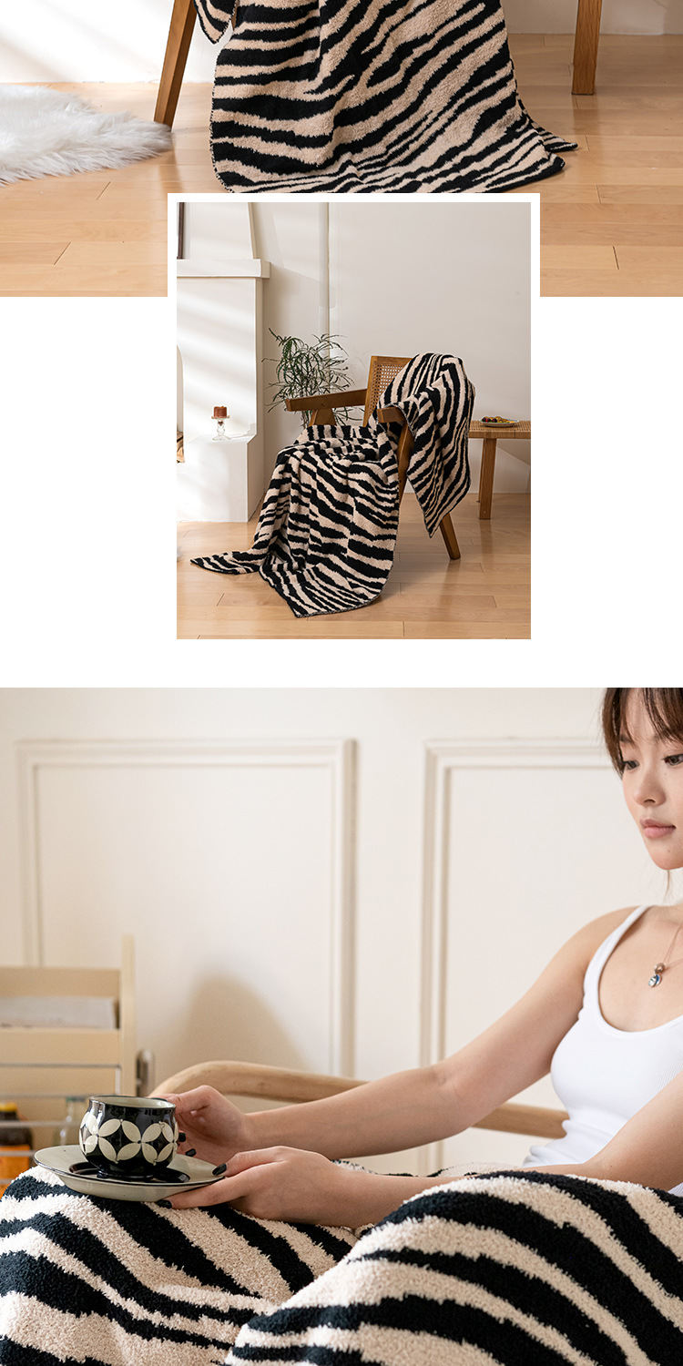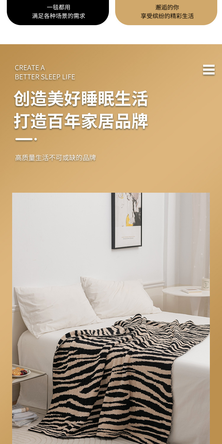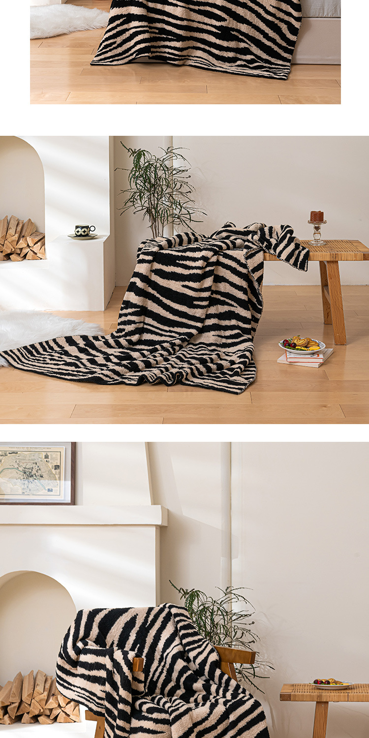 北欧风斑马纹四季通用半边绒毯子办公室空调午休毯针织沙发盖毯