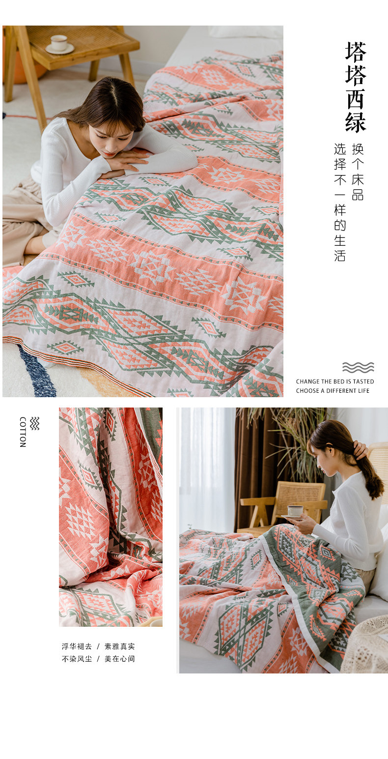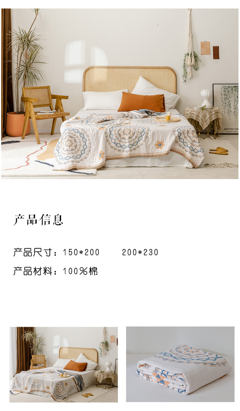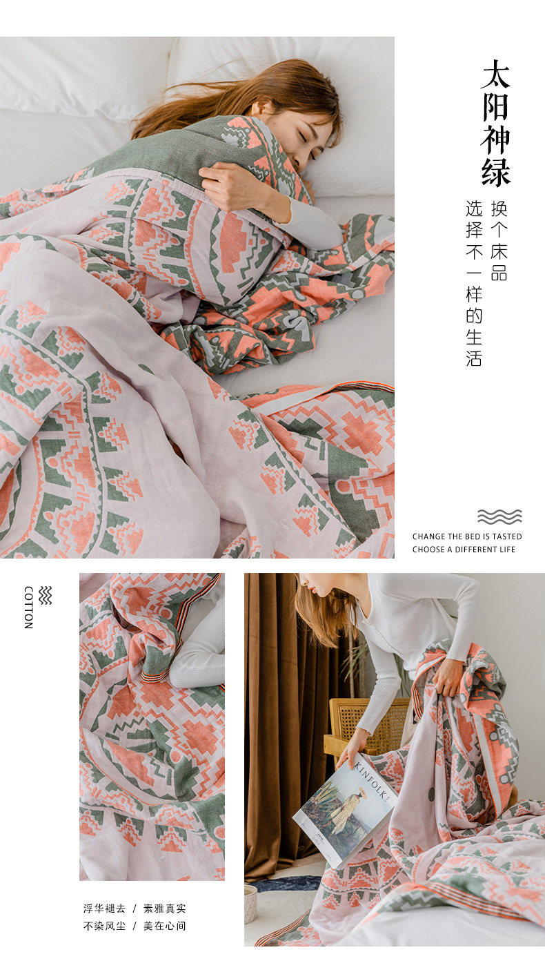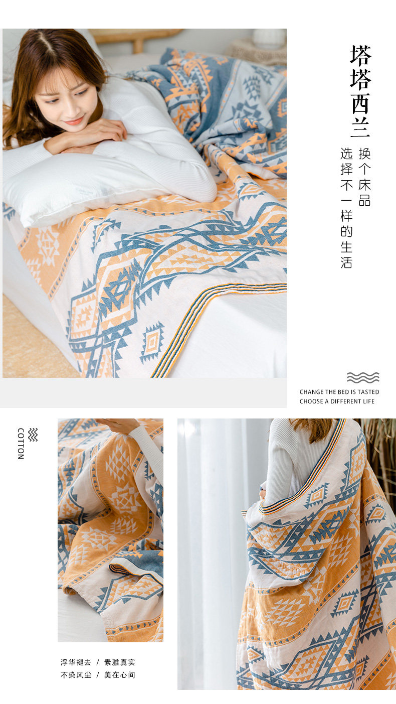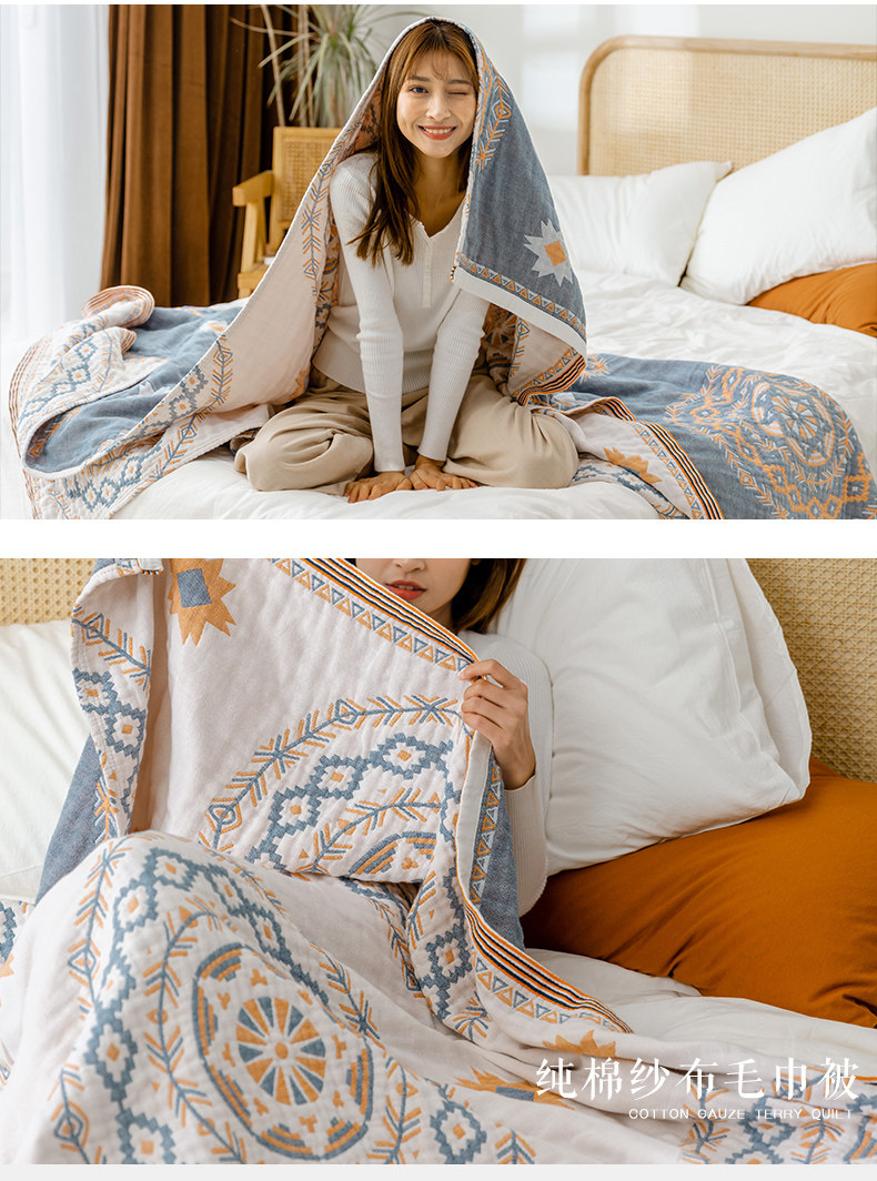 9ZRT纱布毛巾被纯棉夏季薄款棉纱被子成人空调盖毯波西米亚毯子沙