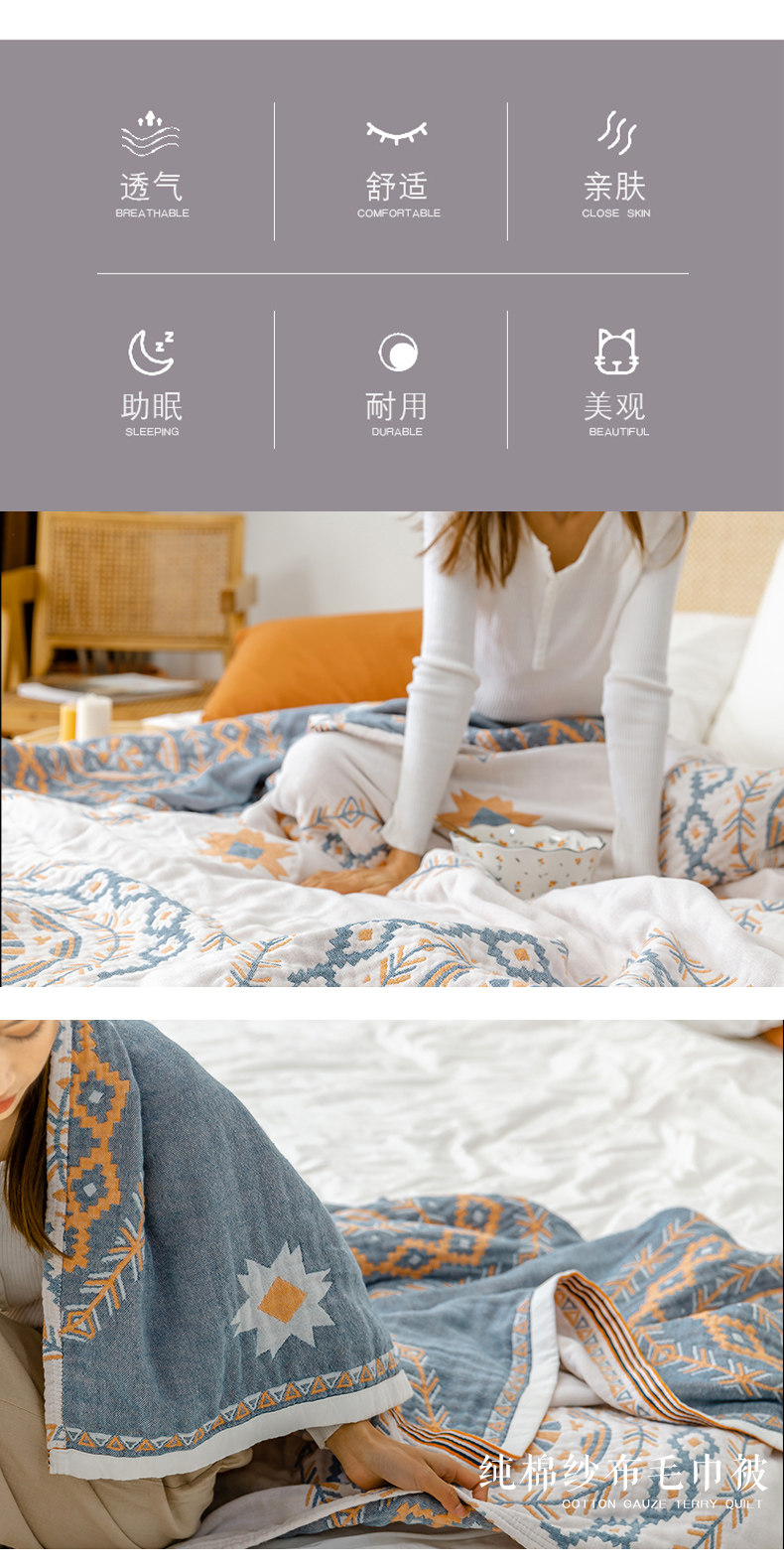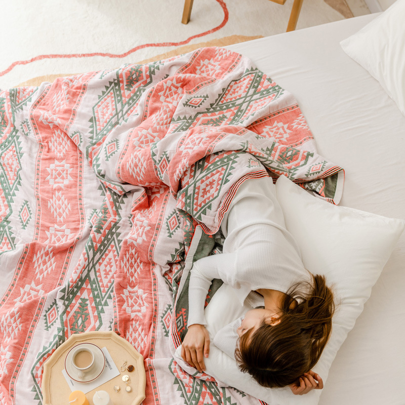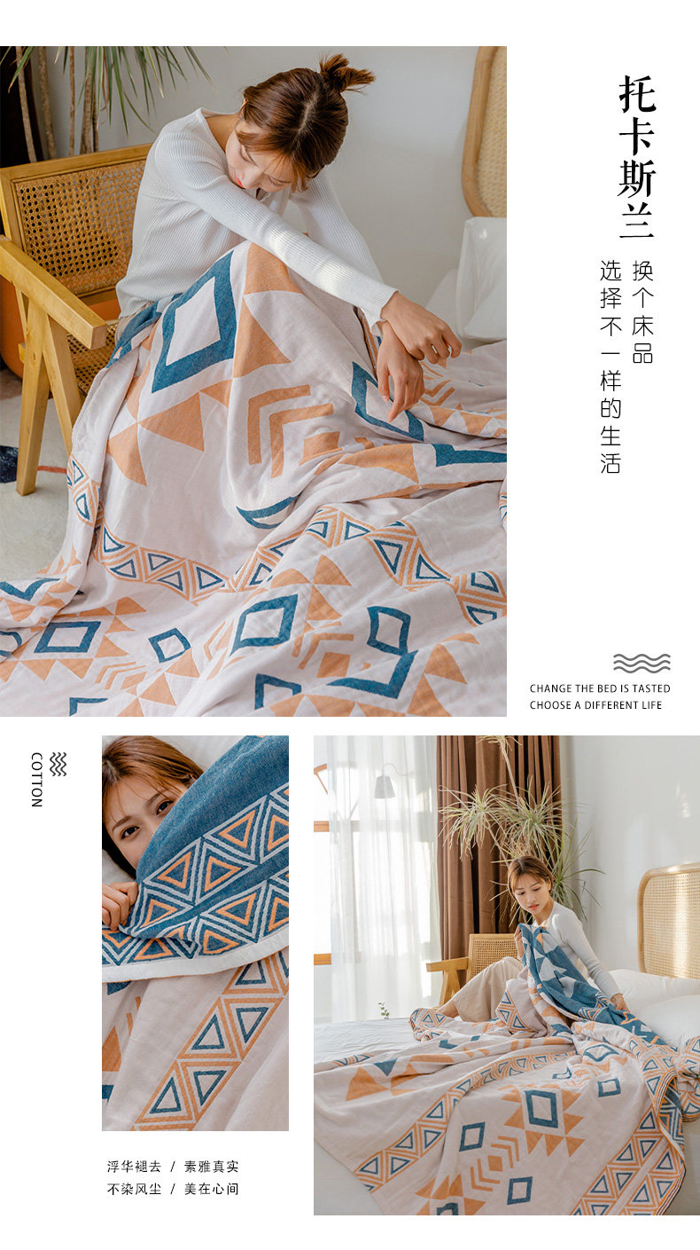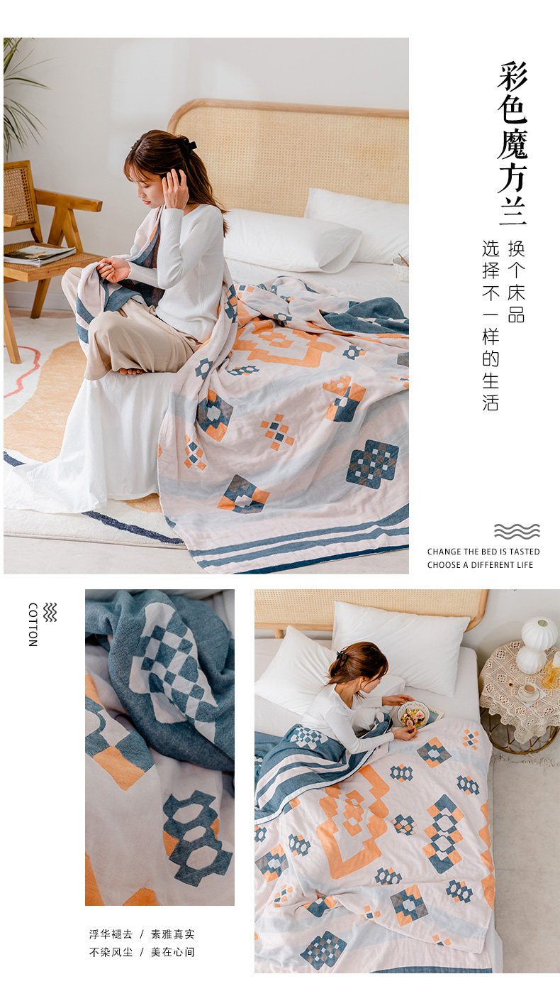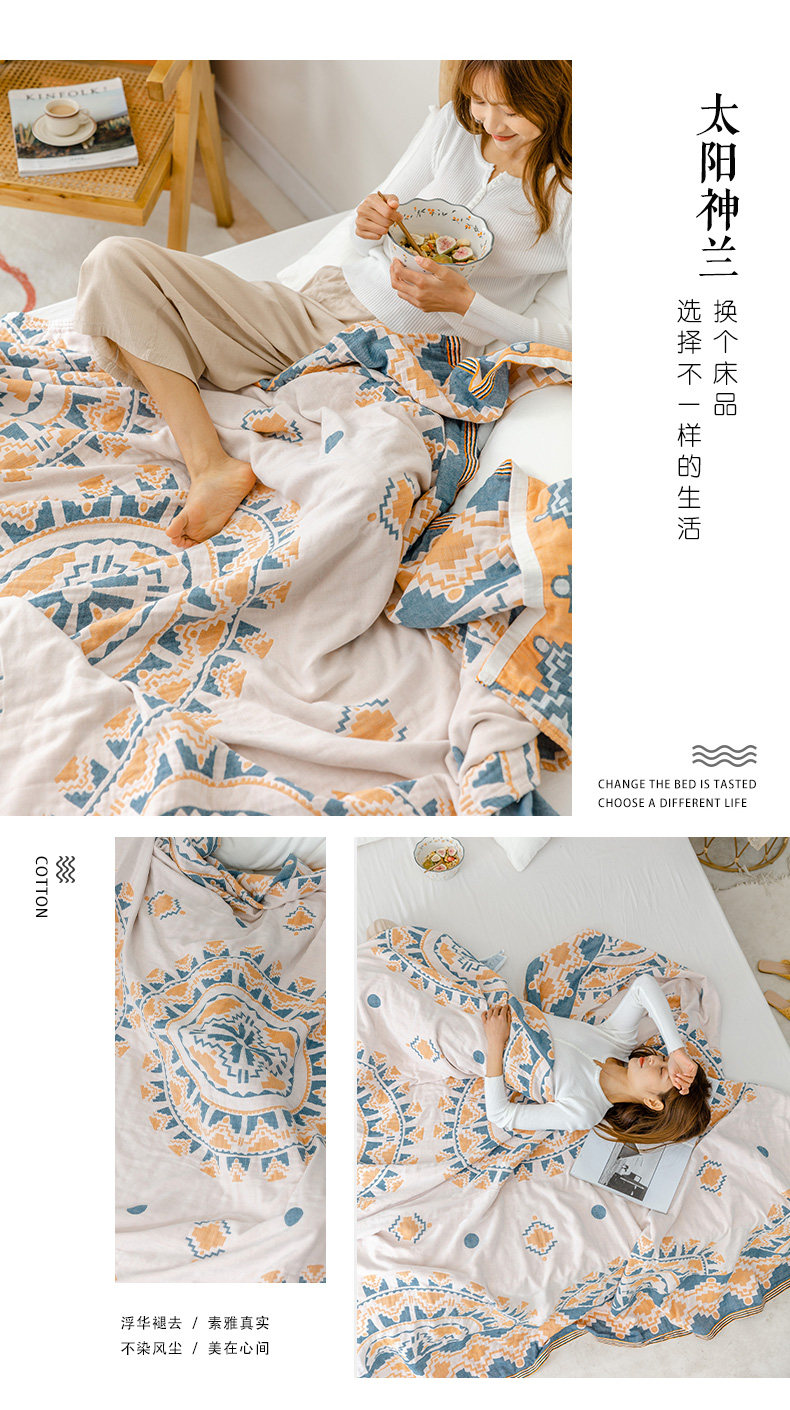 9ZRT纱布毛巾被纯棉夏季薄款棉纱被子成人空调盖毯波西米亚毯子沙