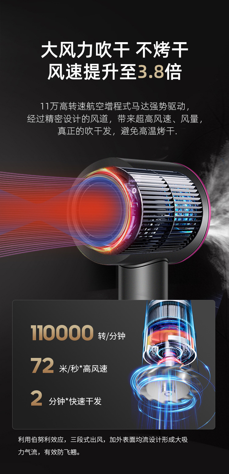 高速华强北电吹风机欧规发廊家用大功率负离子无叶中空风筒跨境