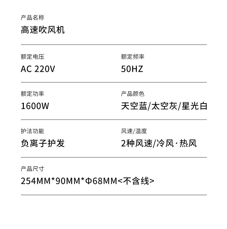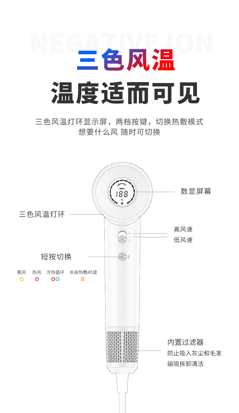 负离子恒温高速电吹风宿舍强风速干吹风筒家用护发静音降噪吹风机