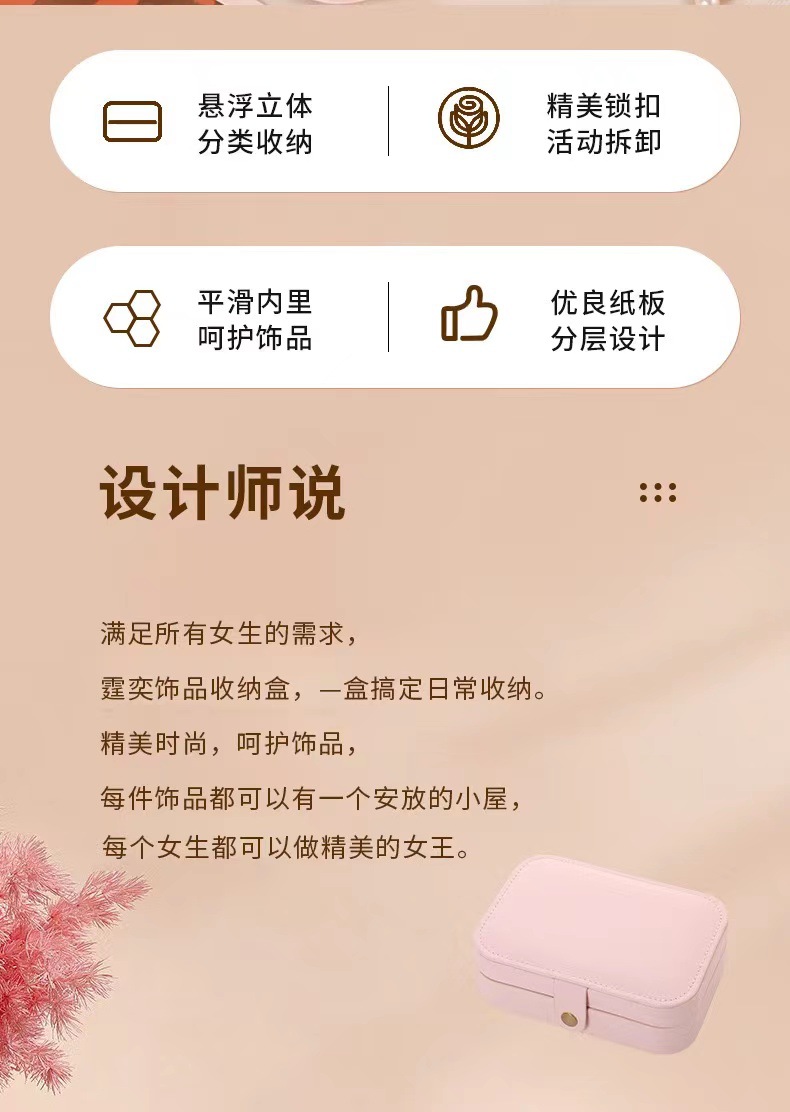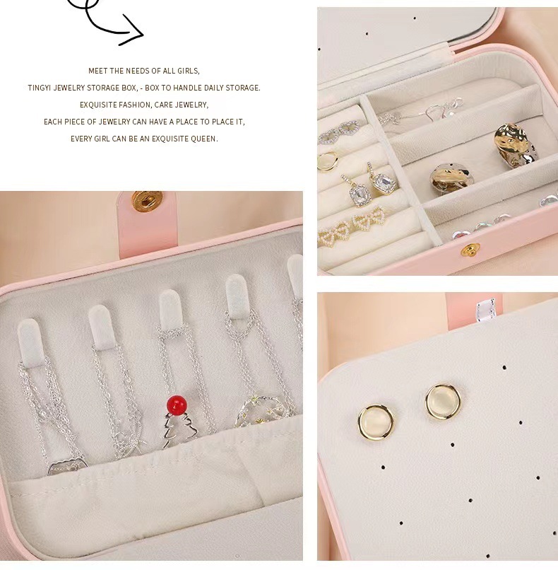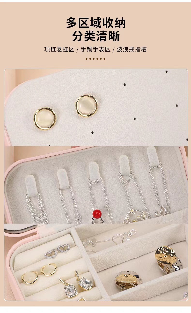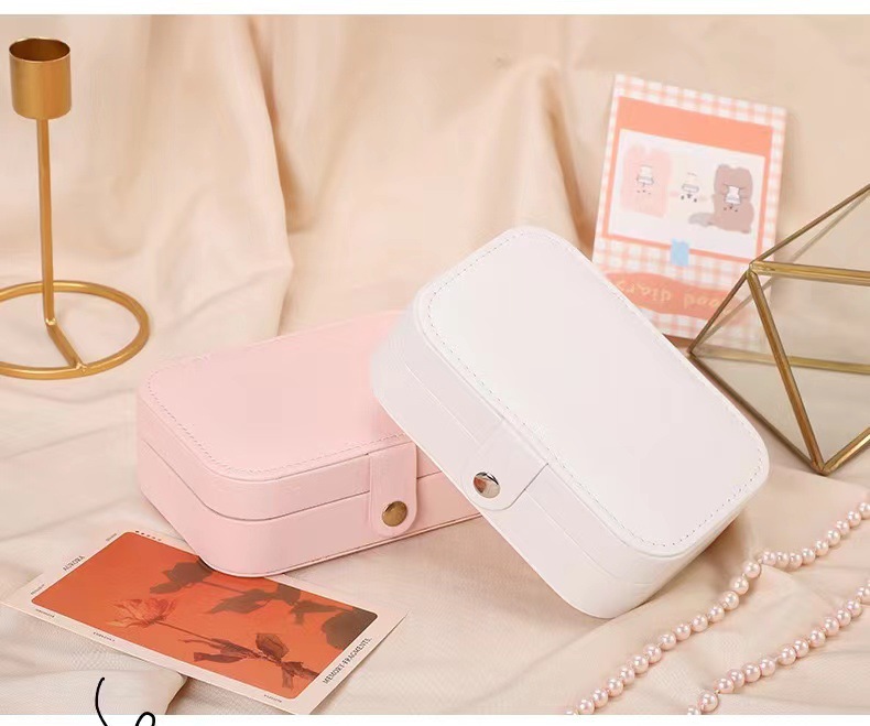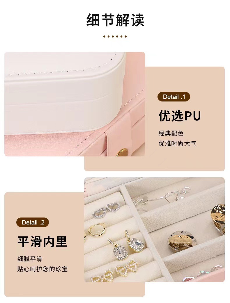 PU双层首饰收纳盒简约便携戒指项链饰品盒耳环耳钉包装盒现货批发