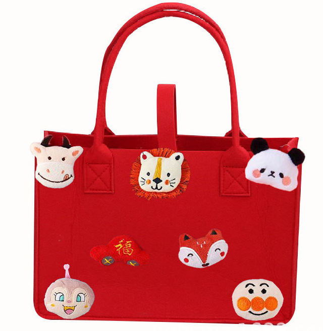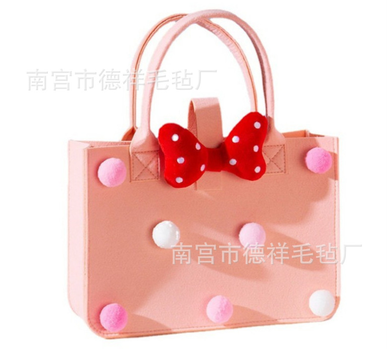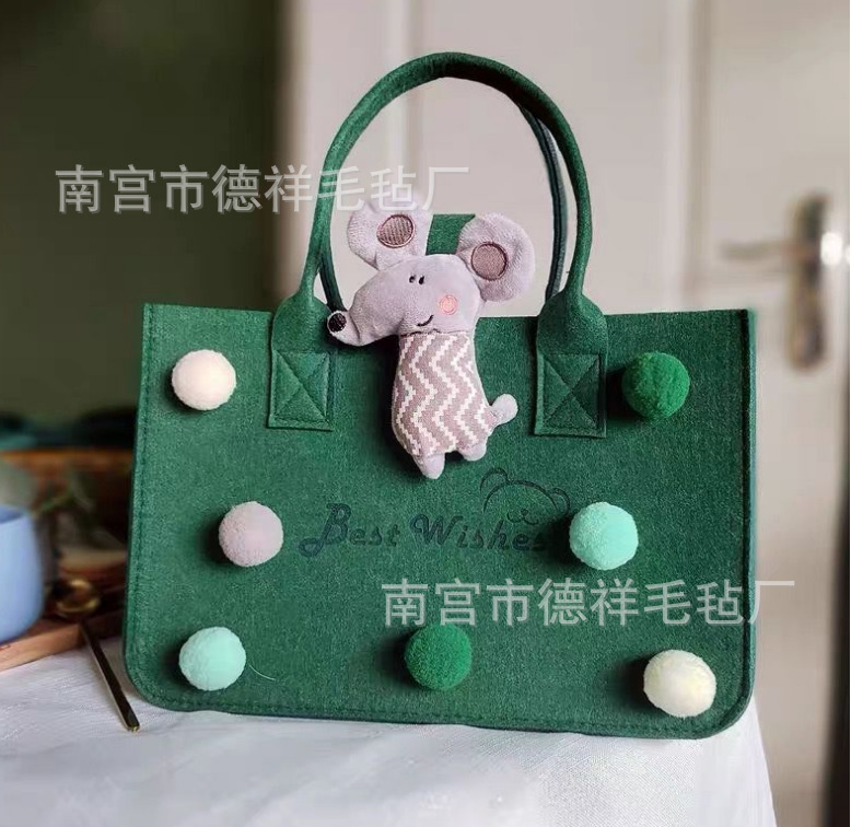 新款直播热卖毛毡包伴手礼袋卡通毛球手提包周岁结婚礼品手提袋