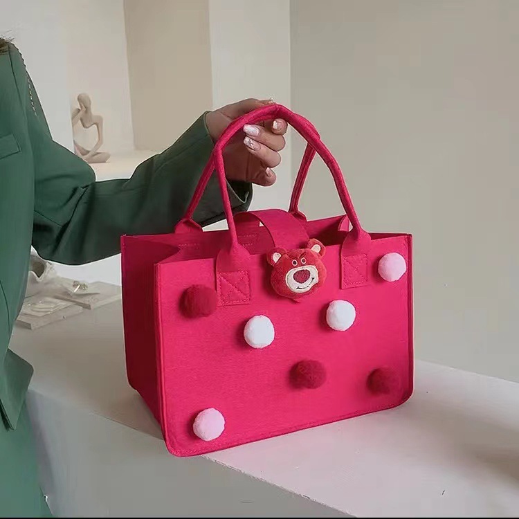 新款可爱宝宝满月伴手礼周岁百日宴毛毡礼品包儿童生日卡通手提袋
