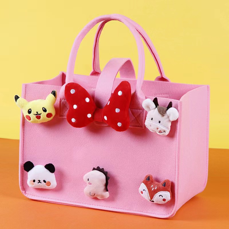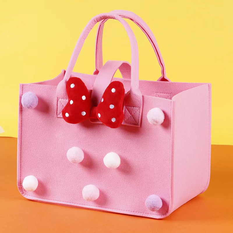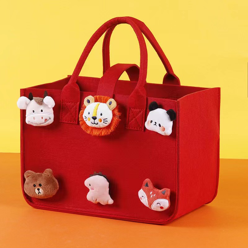 批发毛毡包毛毡手提袋卡通毛球伴手礼礼品手提袋宝宝周岁可印LOGO
