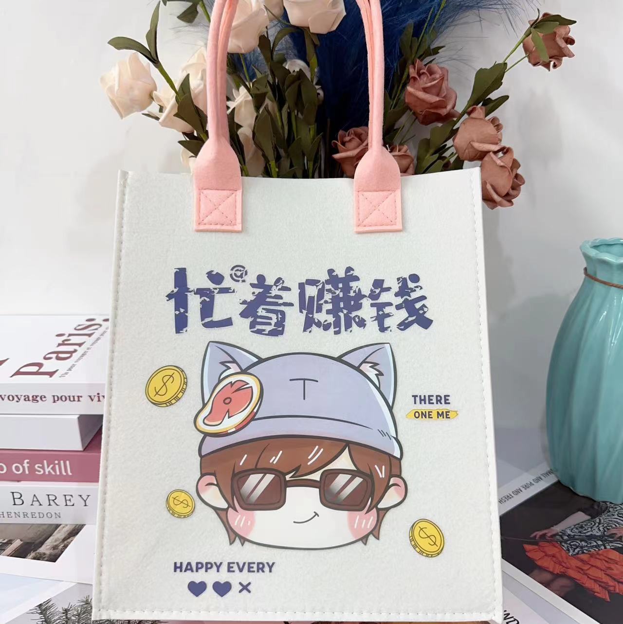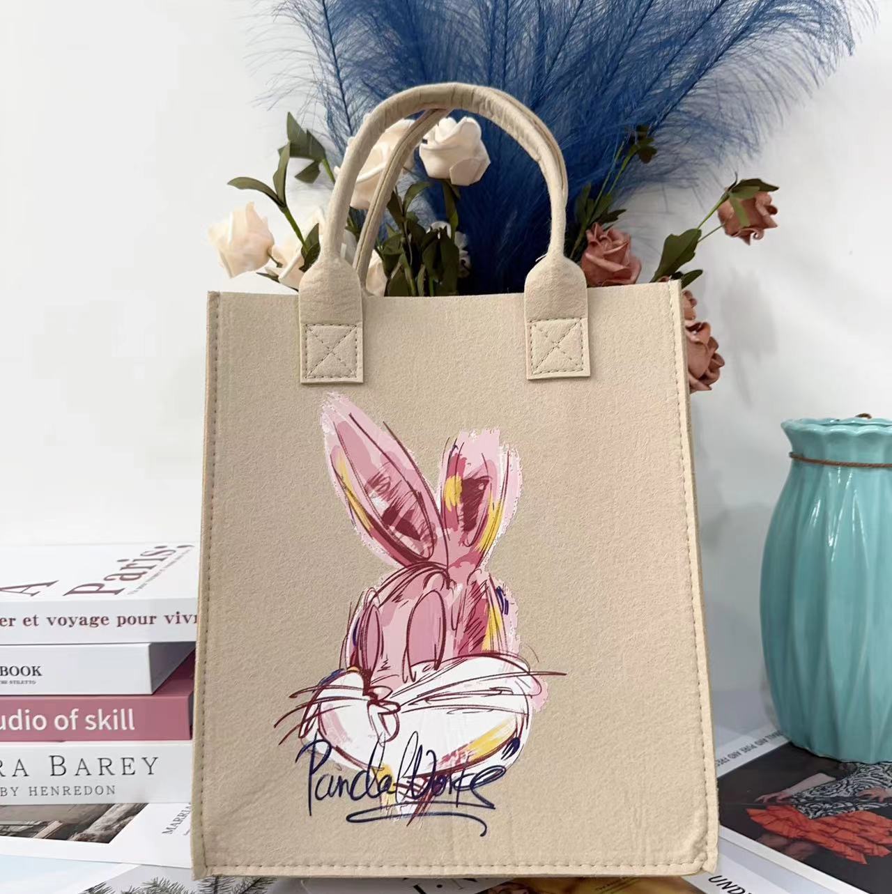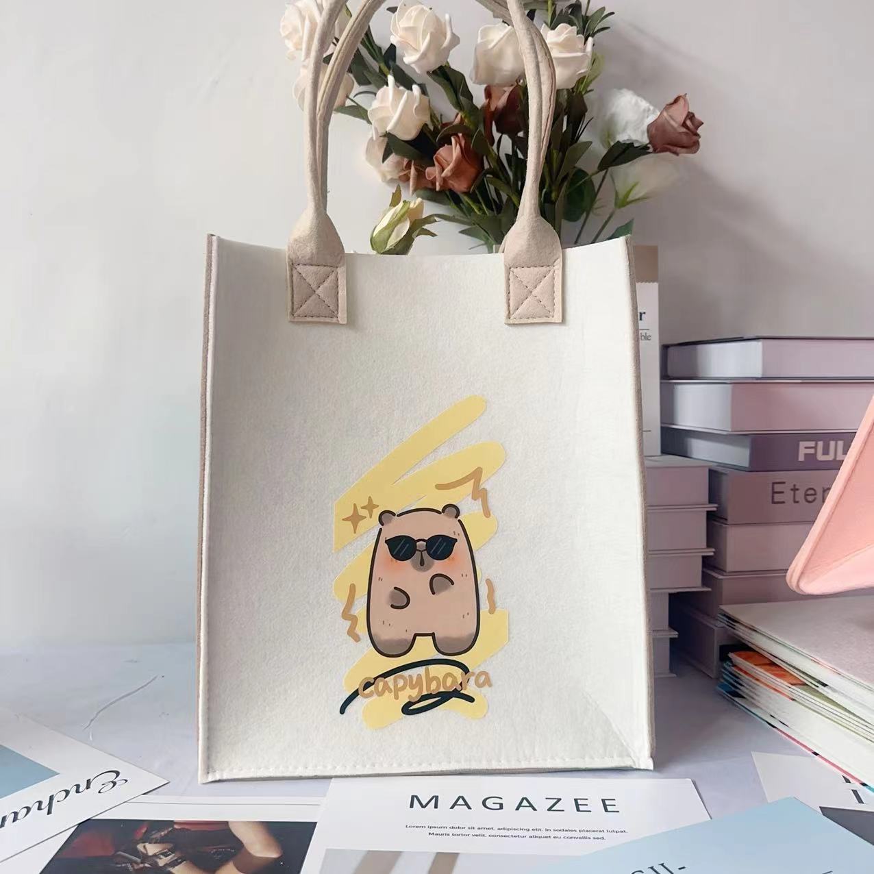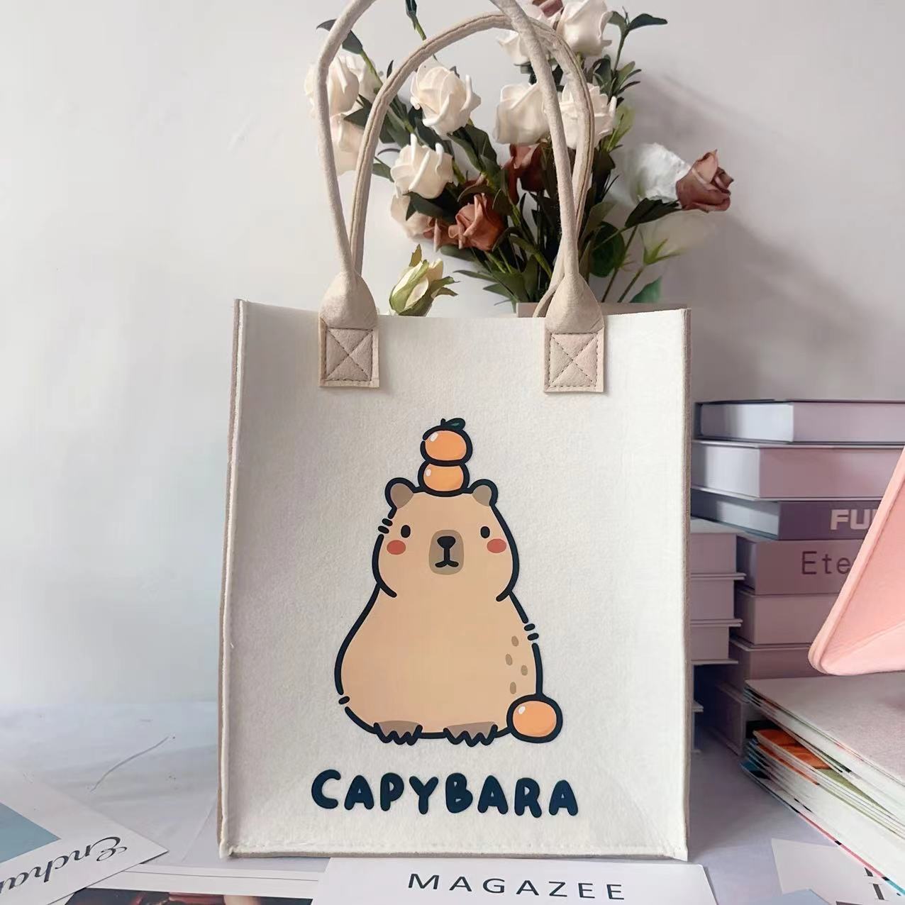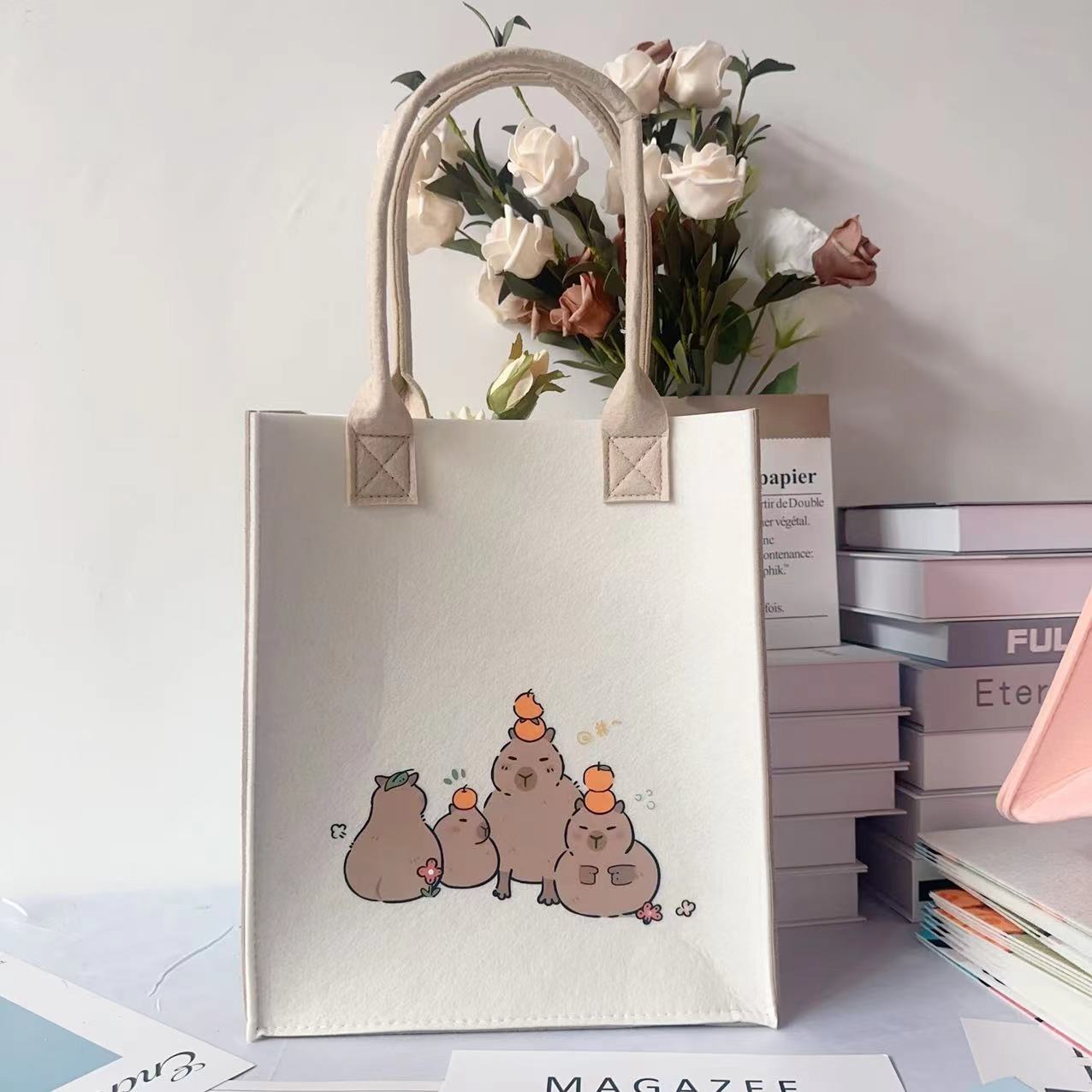新款卡皮巴拉创意手提大容量毛毡包购物袋卡通印花包企业礼品袋