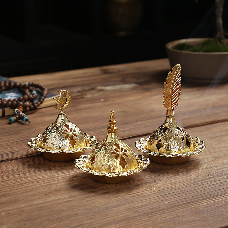 创意金色金属 手持香炉中东阿拉伯迷你小香熏炉 配托盘铝合金香炉