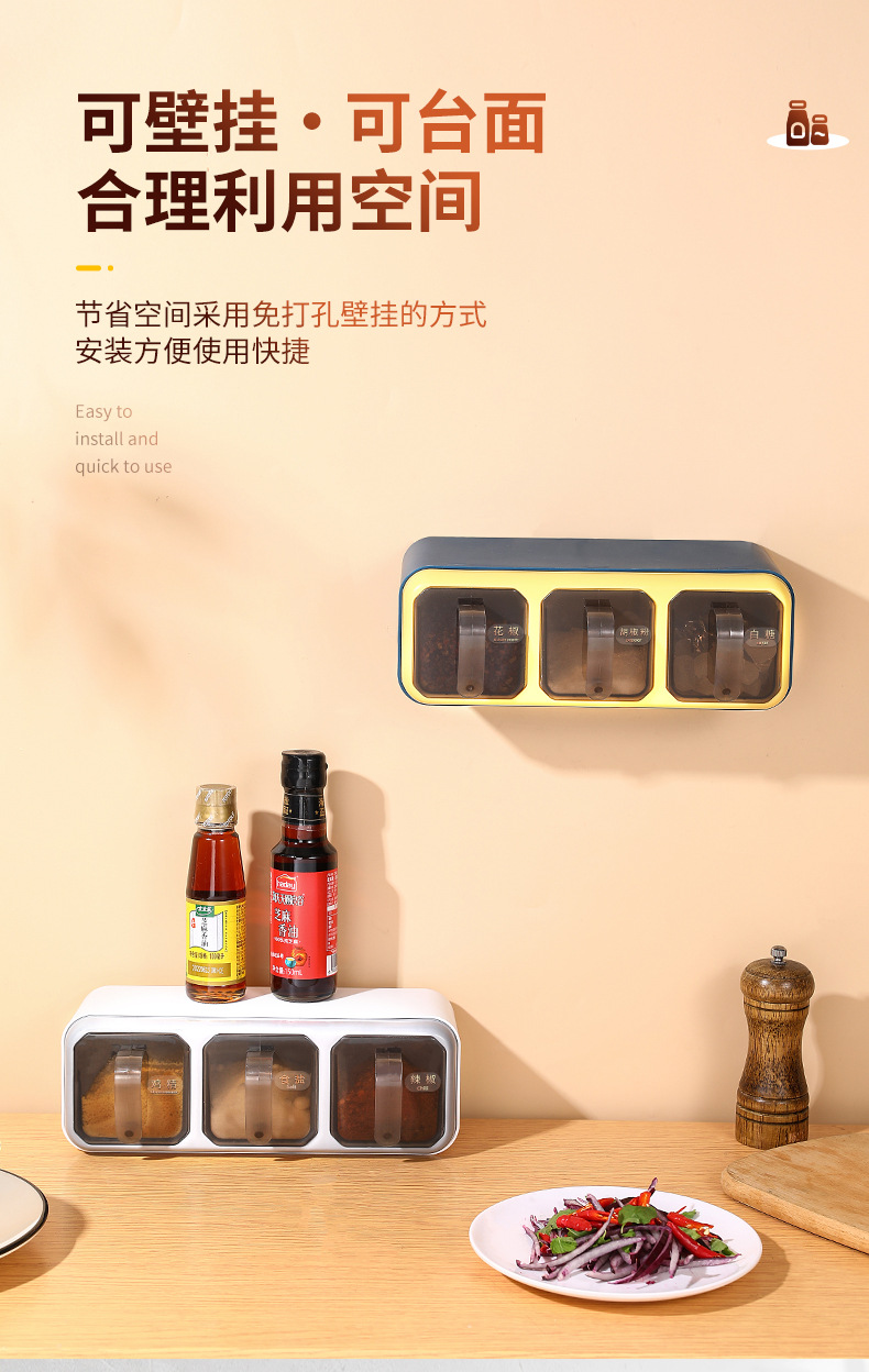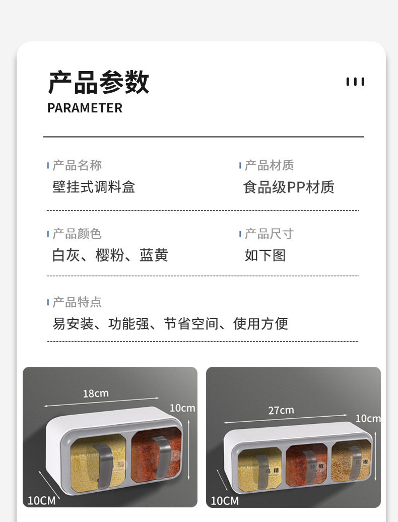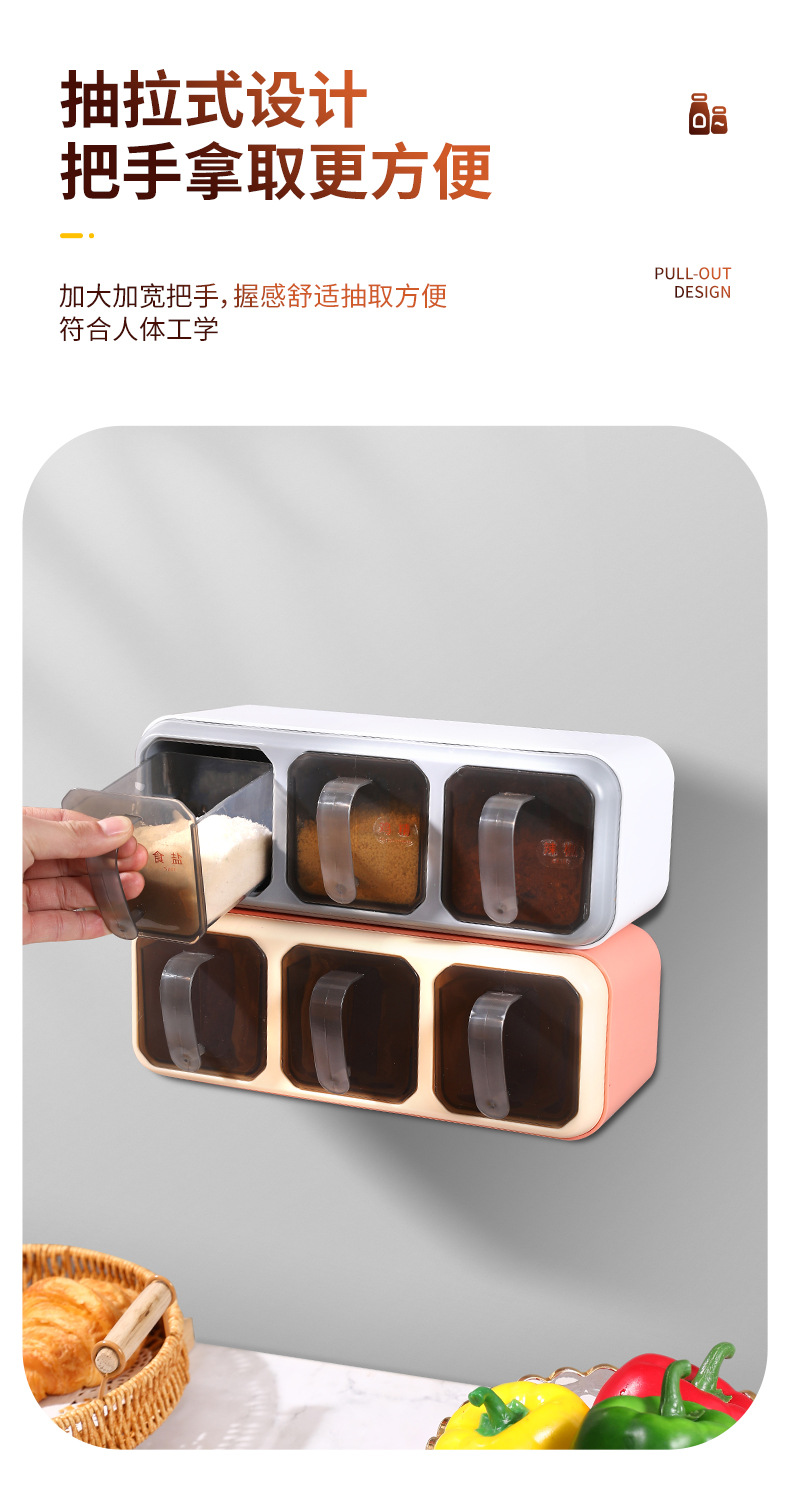 厨房免打孔挂壁调味盒密封防潮抽屉式调味罐盐味精佐料调料收纳盒