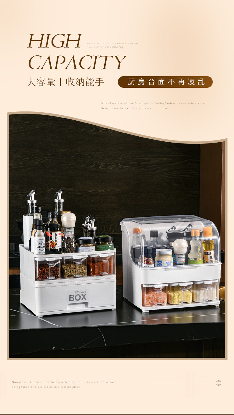 新款厨房防尘带盖调味盒调味料置物架台面多层调味品收纳架调料架