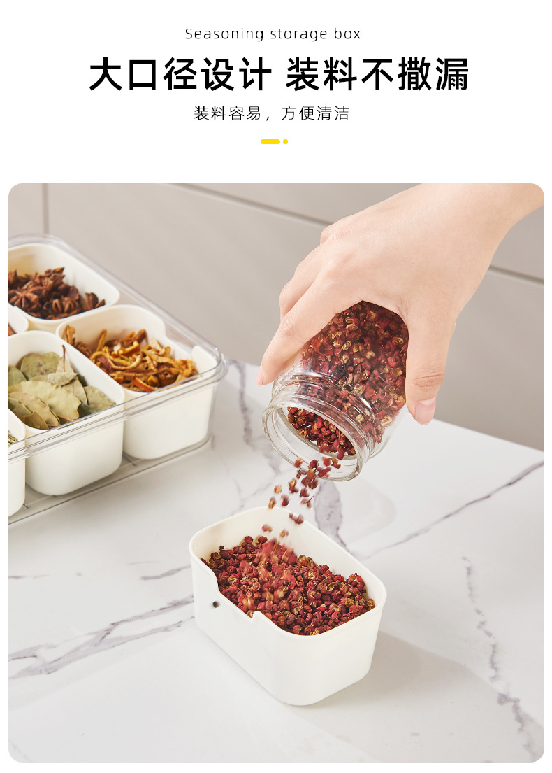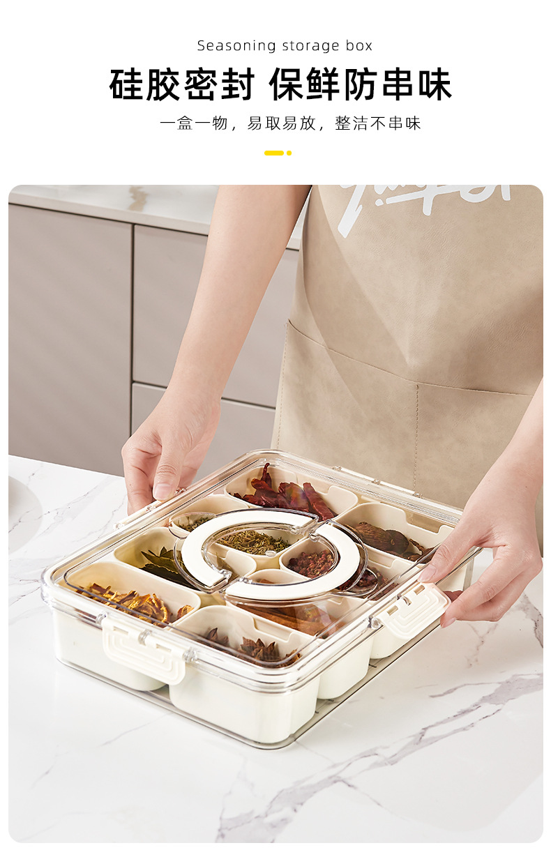 家用佐料盒厨房食盐味精调味盒葱姜蒜八分格调味盒套装香料收纳盒