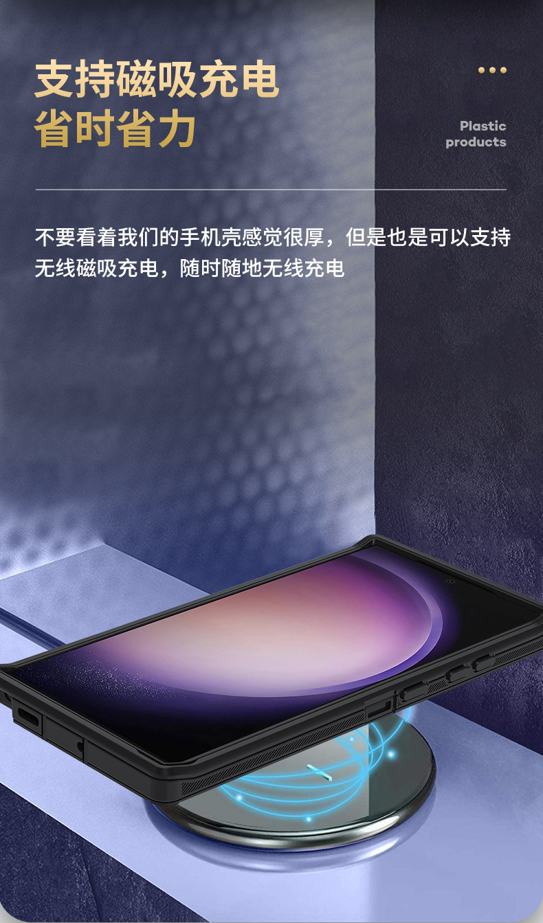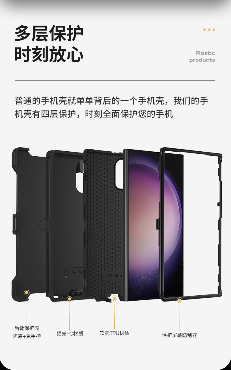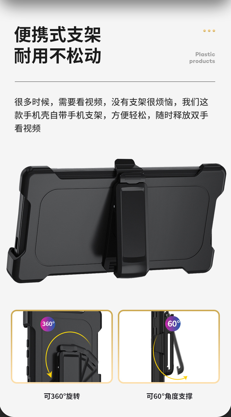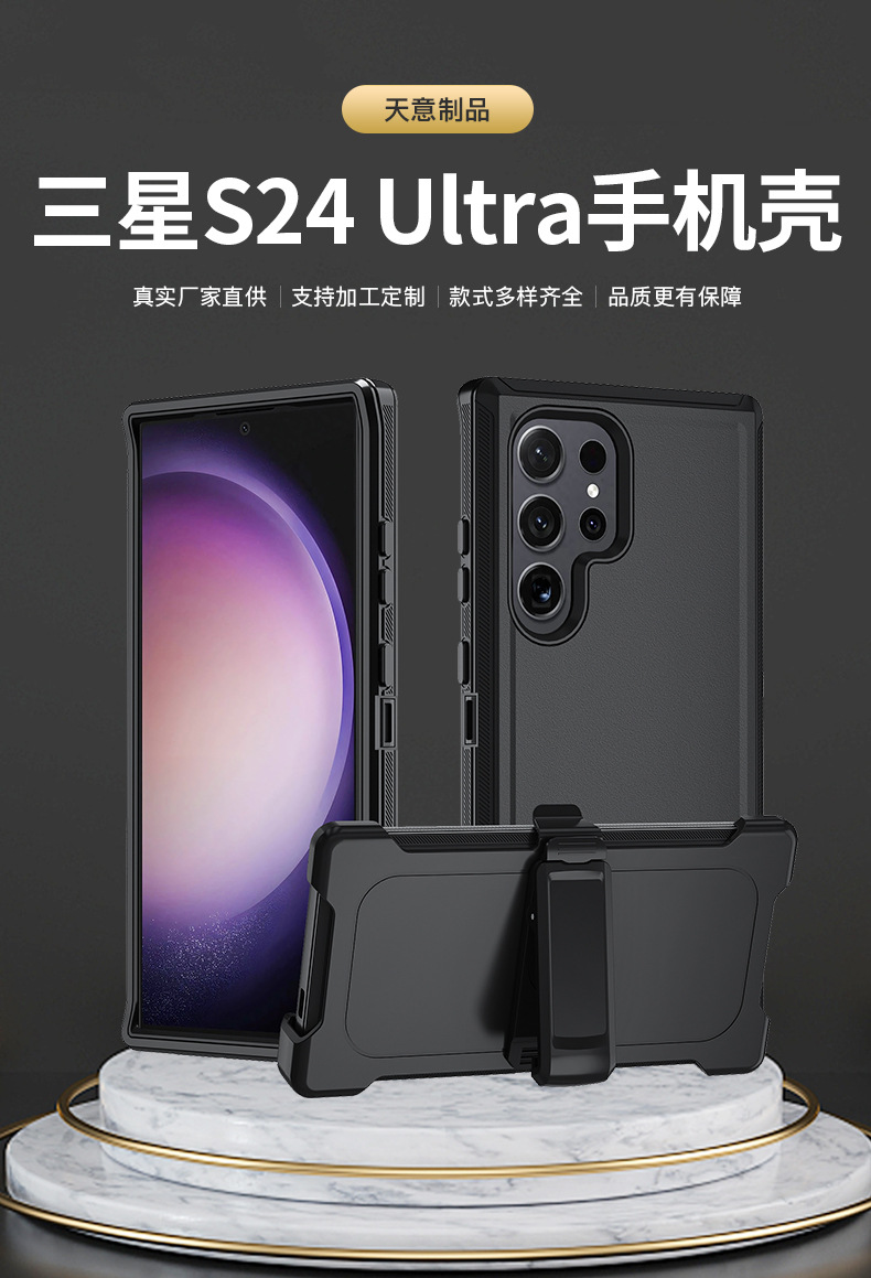 SAM S24U手机壳,三合一防尘防摔手机壳,佩戴360°旋转背夹手机