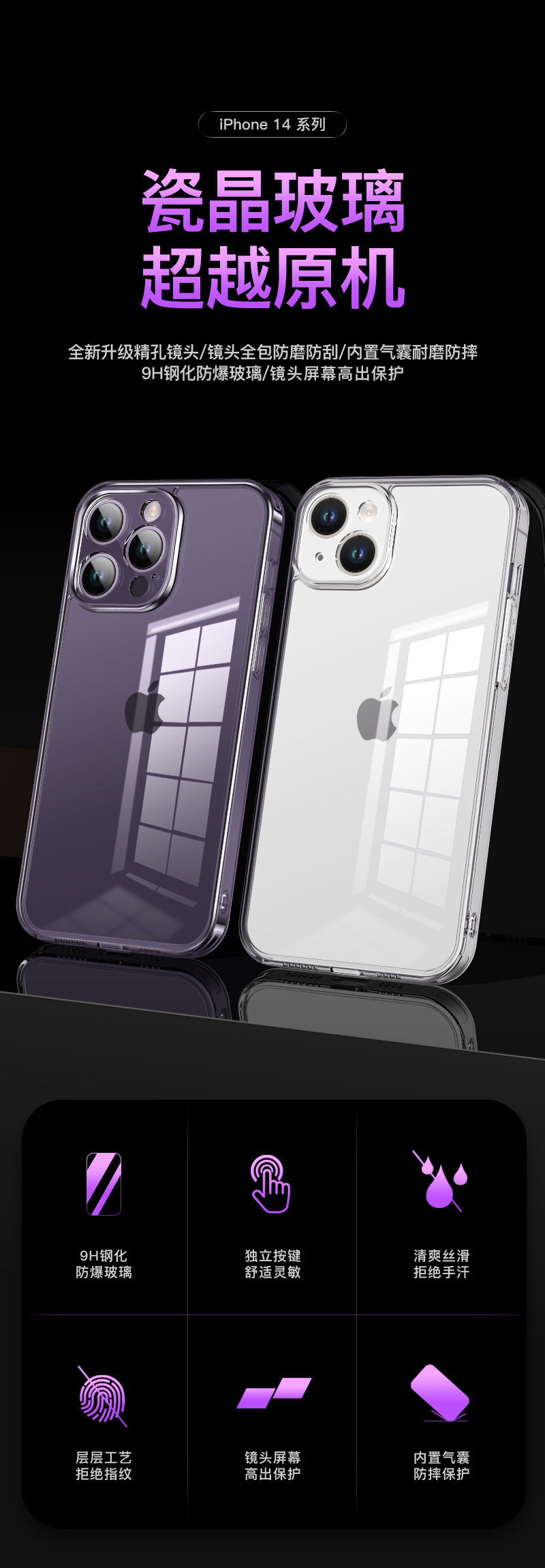 新款适用iPhone15玻璃保护套钢化玻璃iPhone14二合一手机壳