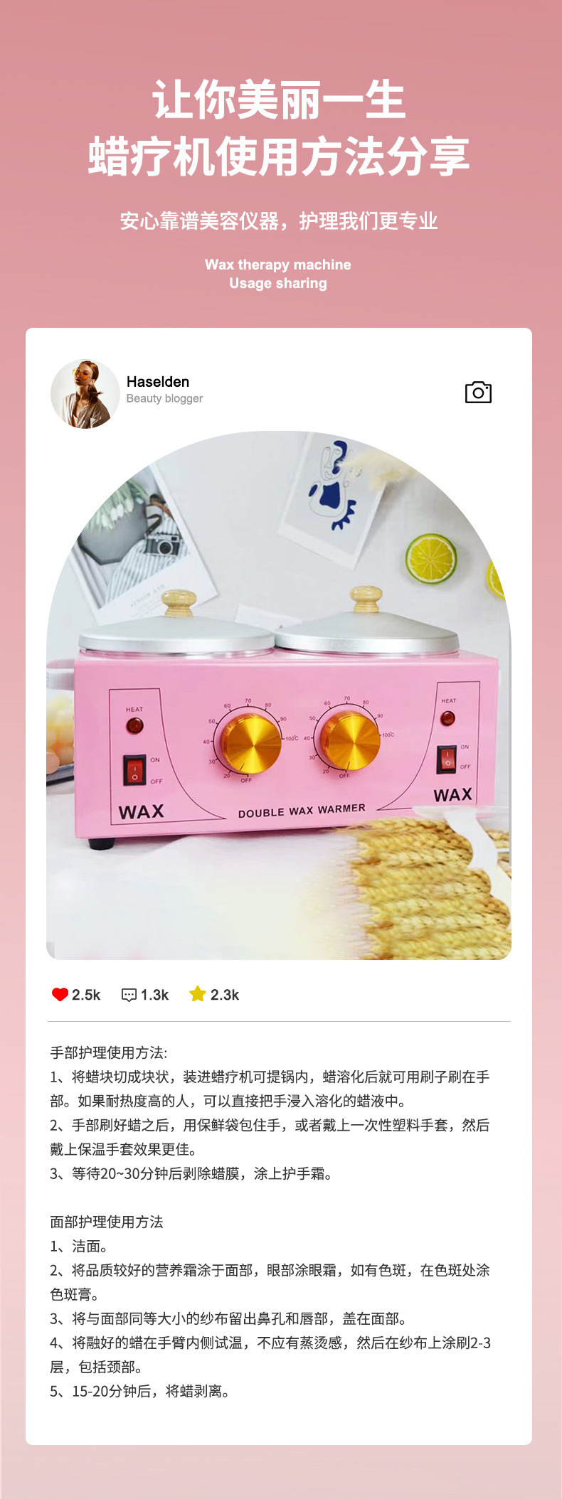 励明跨境美容院双炉调温蜡疗机美甲护肤蜡疗机双炉调温脱毛蜡疗机