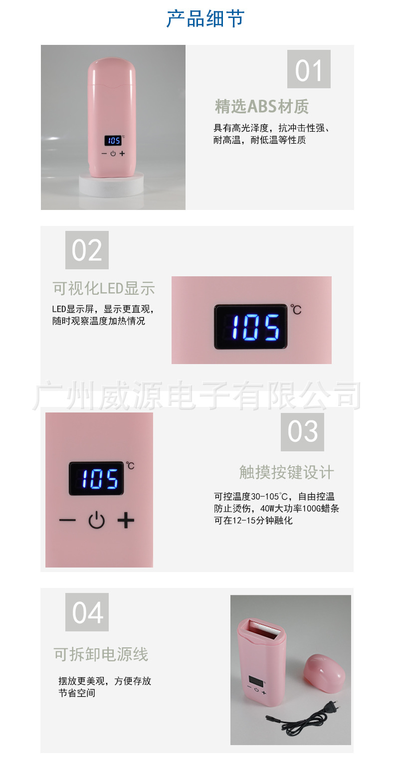 批发跨境脱毛套装新款脱毛蜡疗机蜜蜡便携式热蜡机脱毛纸清洁油包