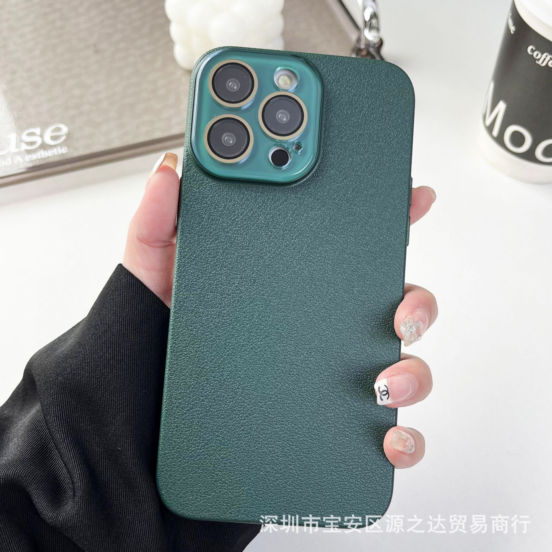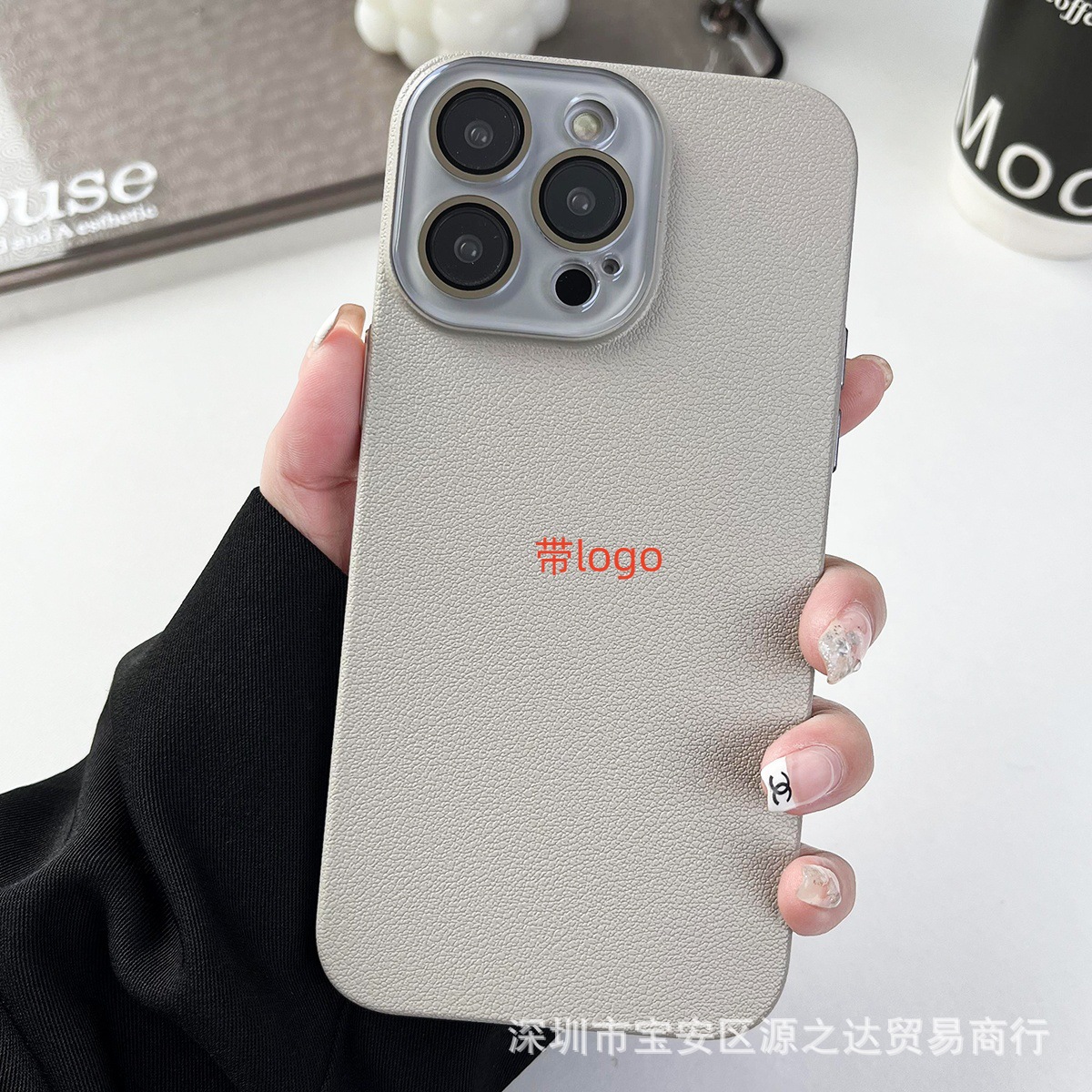 适用苹果15Pro自带护镜水晶镜头荔枝纹手机壳iPhone14纯色12精孔