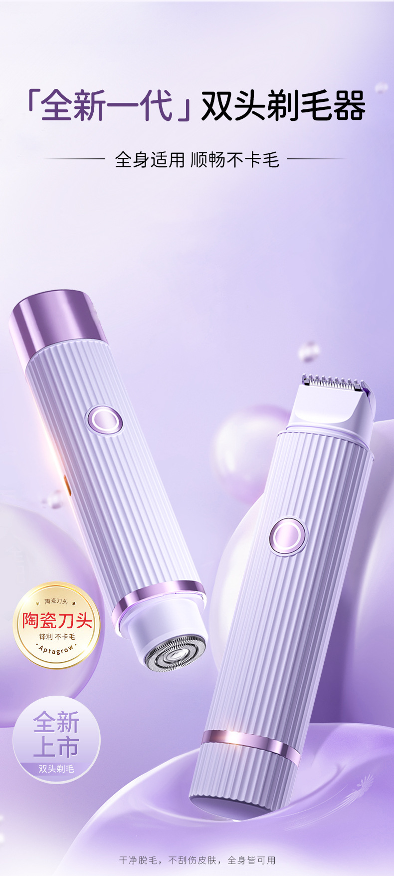 跨境脱毛器女士双头剃毛器私处阴毛修剪器电动刮毛刀女士脱毛仪