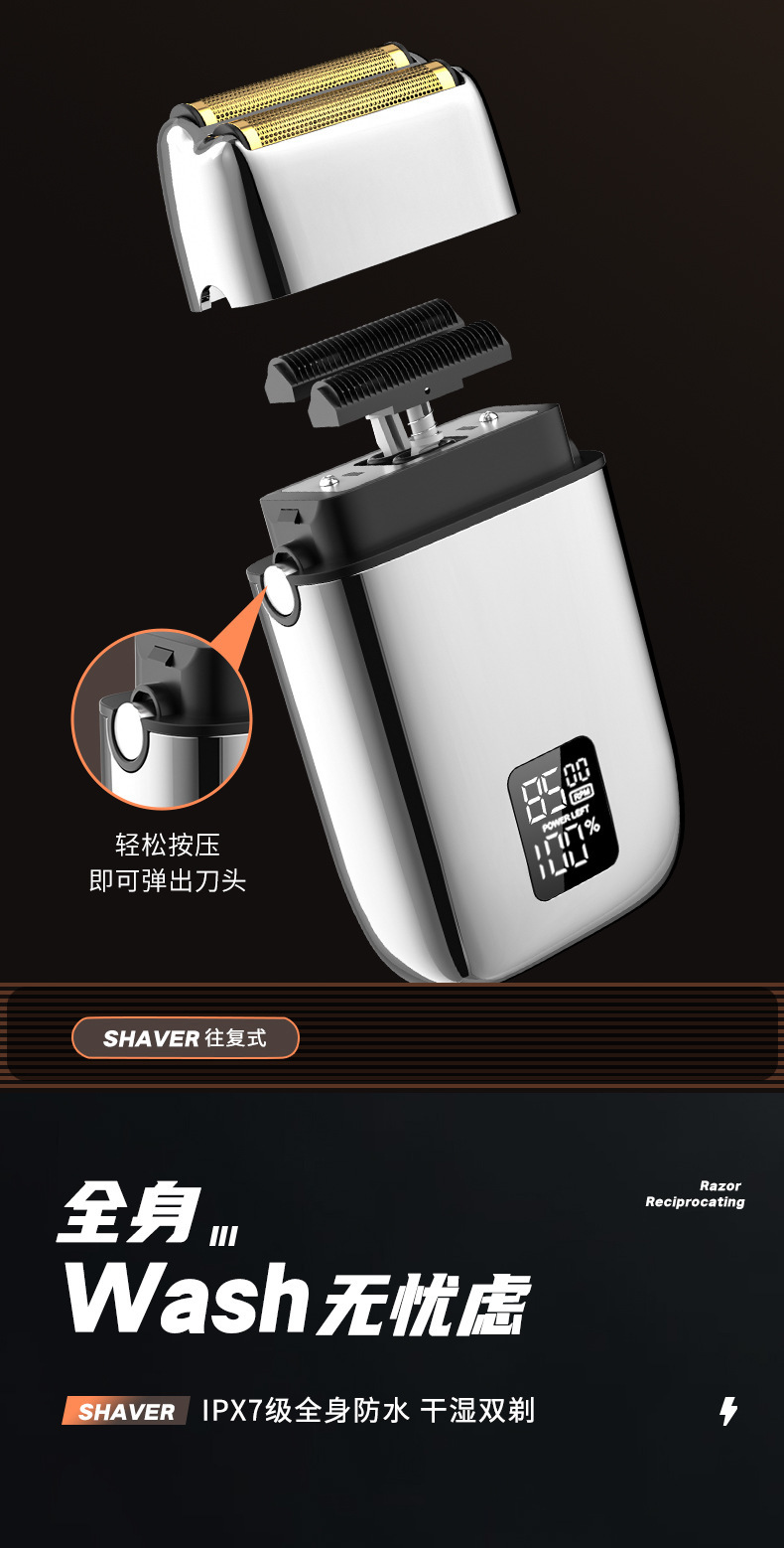 跨境新款LK-2015复古数显增白器剃须刀刮胡刀充电式剃光头发廊