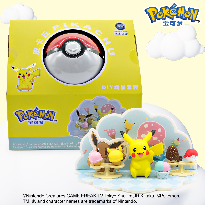 宝可梦3D场景摆件玩正版神奇宝贝比卡丘小火龙伊布偶潮玩手办玩具