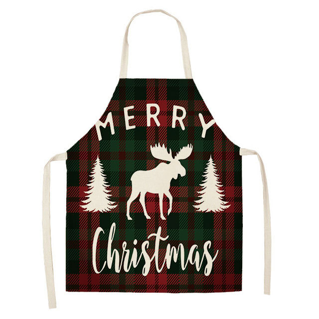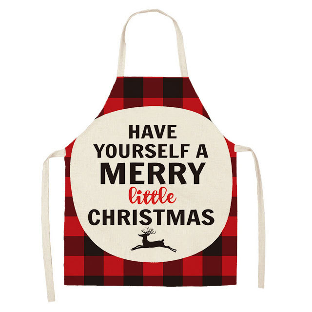 跨境新款圣诞围裙格子系列棉麻围裙家居清洁罩衣节日派对围裙批发