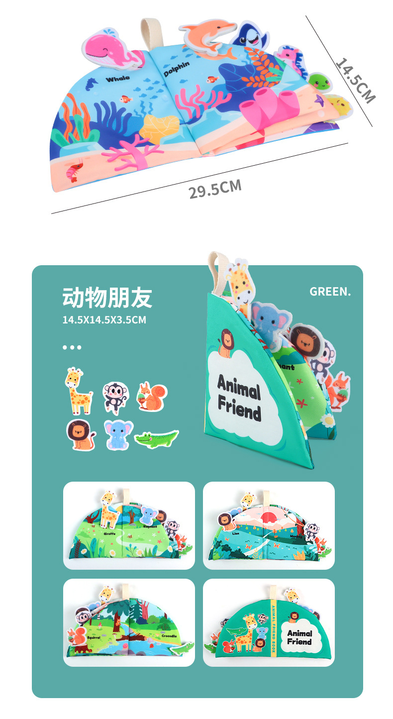 跨境布书婴儿玩具0-3岁早教益智魔术贴可撕可啃咬互动手撕安静书
