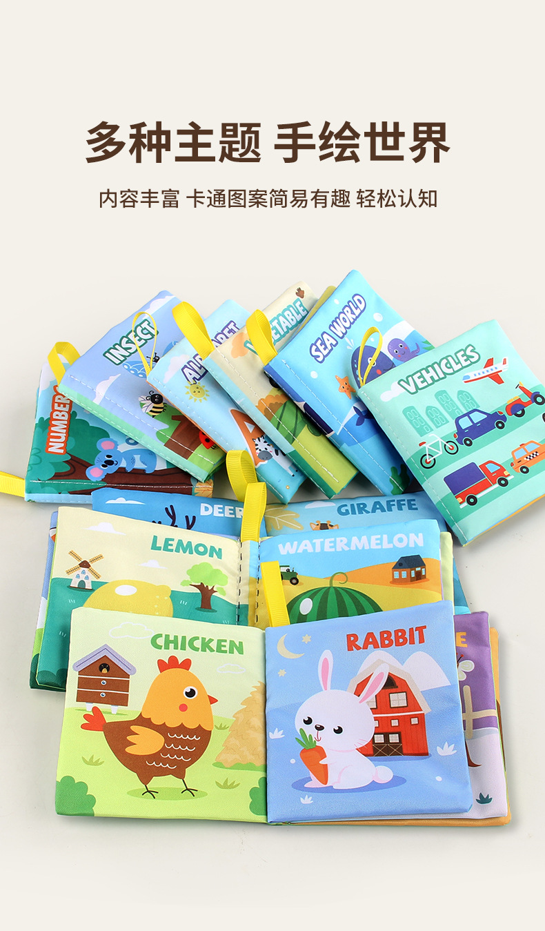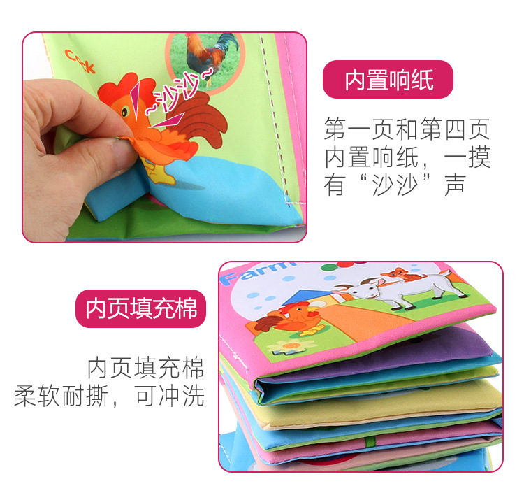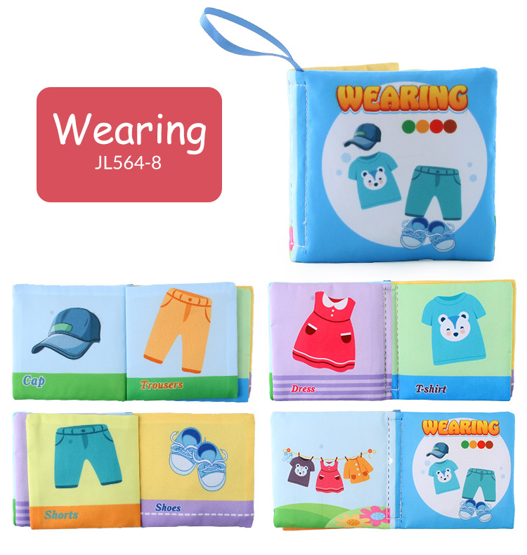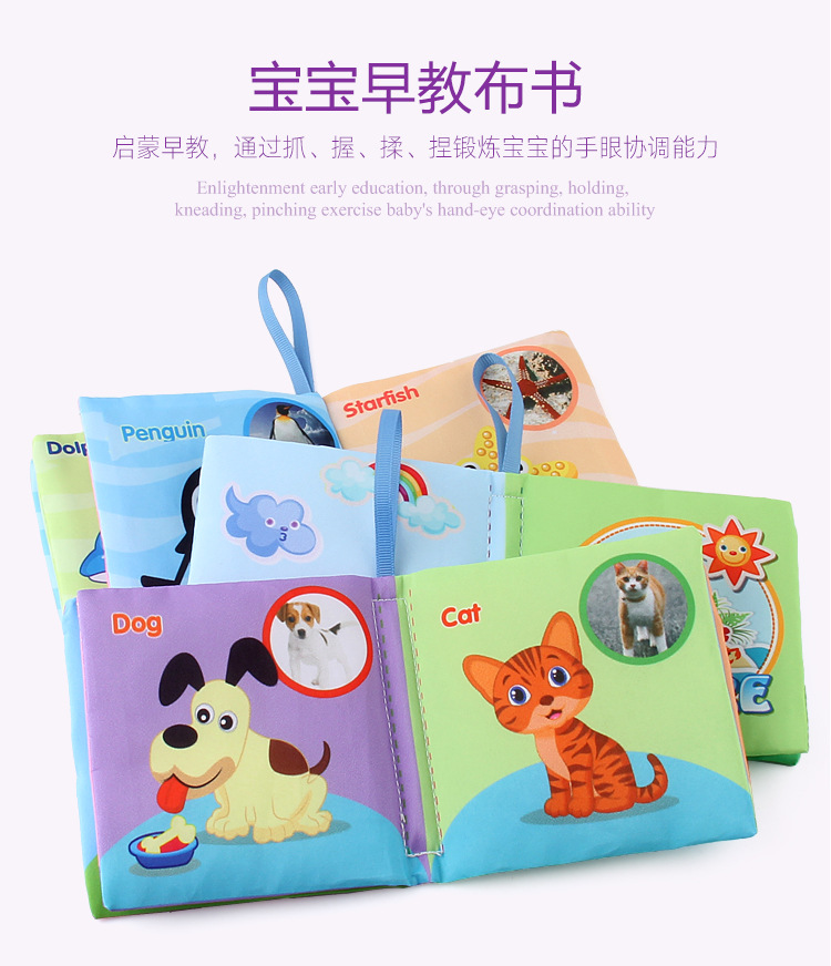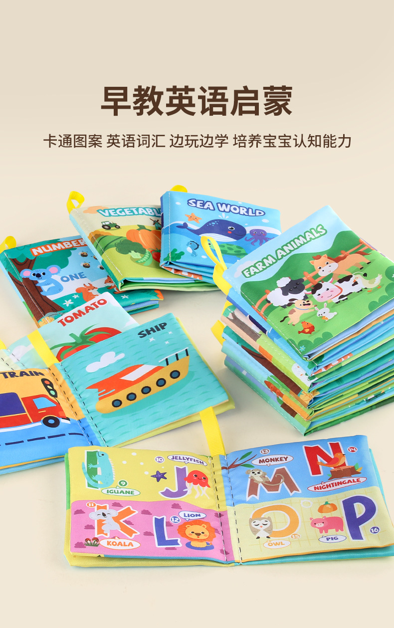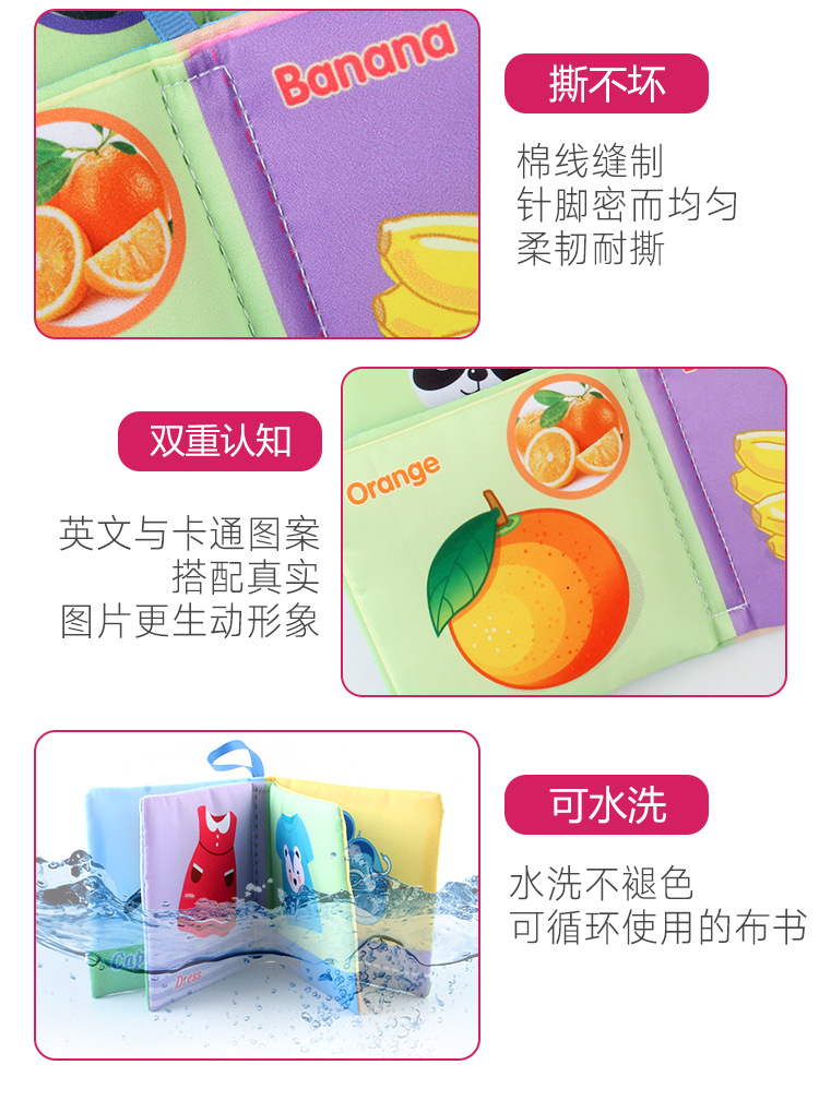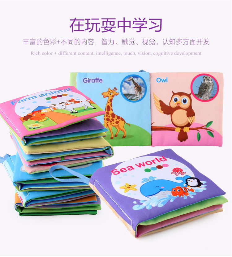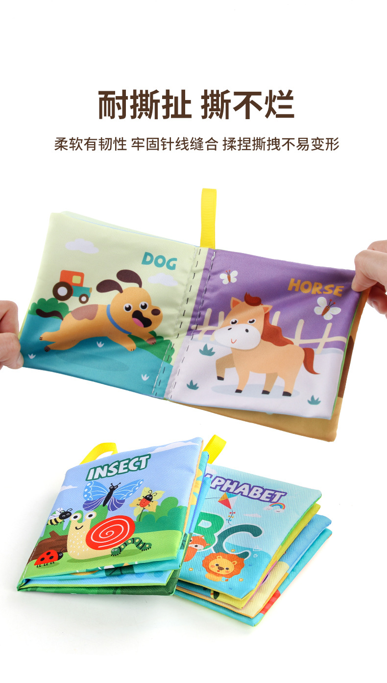 外贸立体婴儿布书早教玩具4页8面英文手掌书动物服装认知宝宝布书