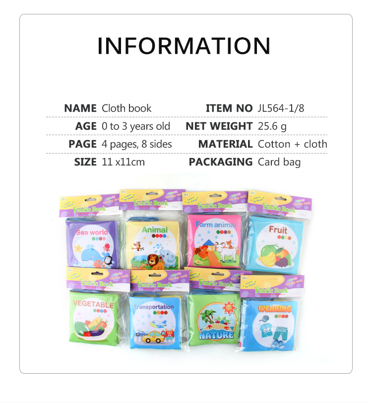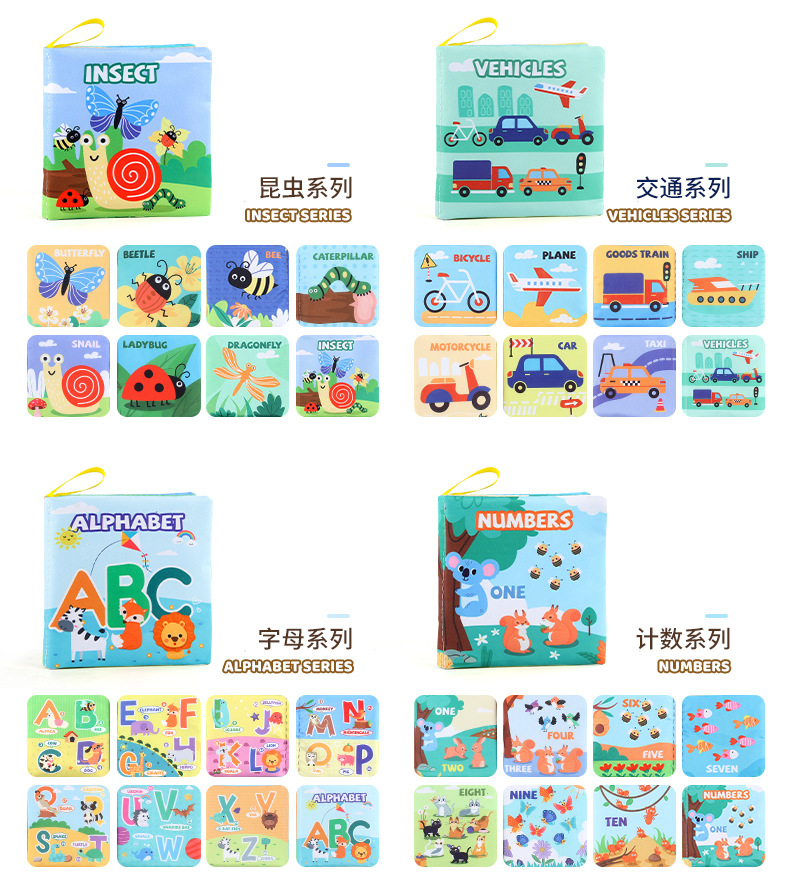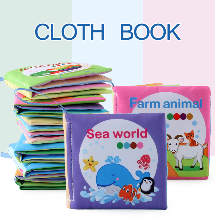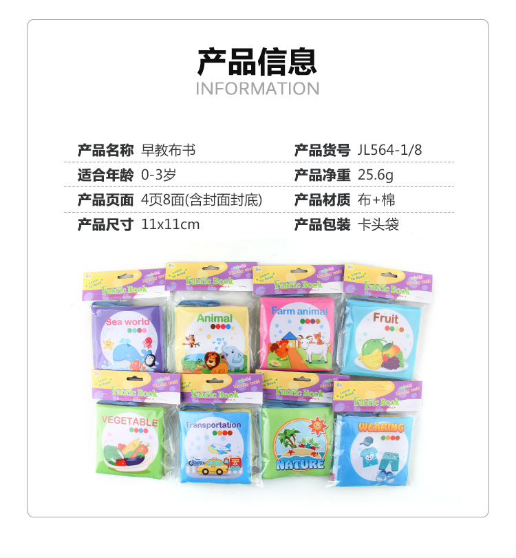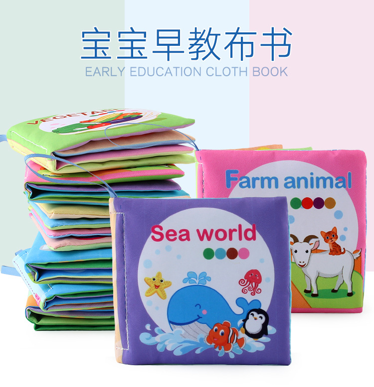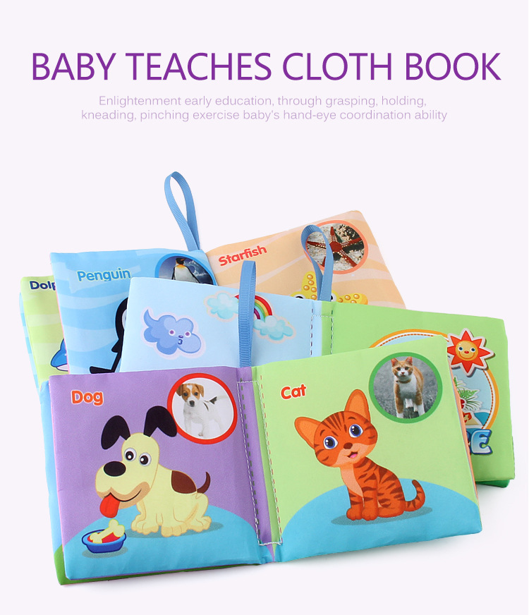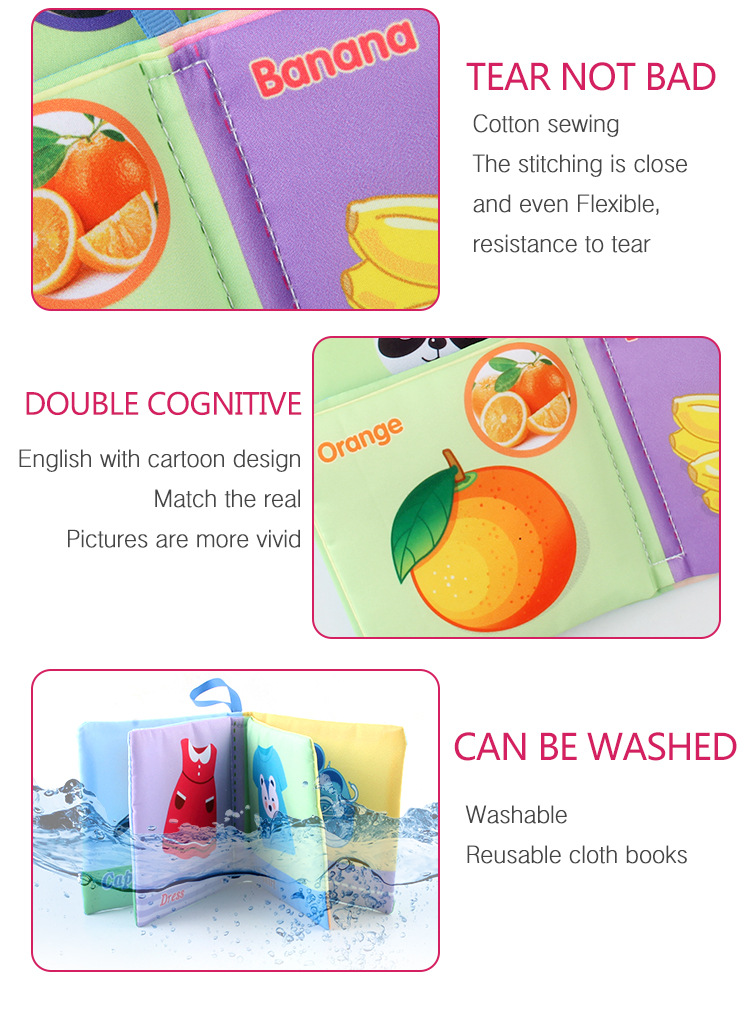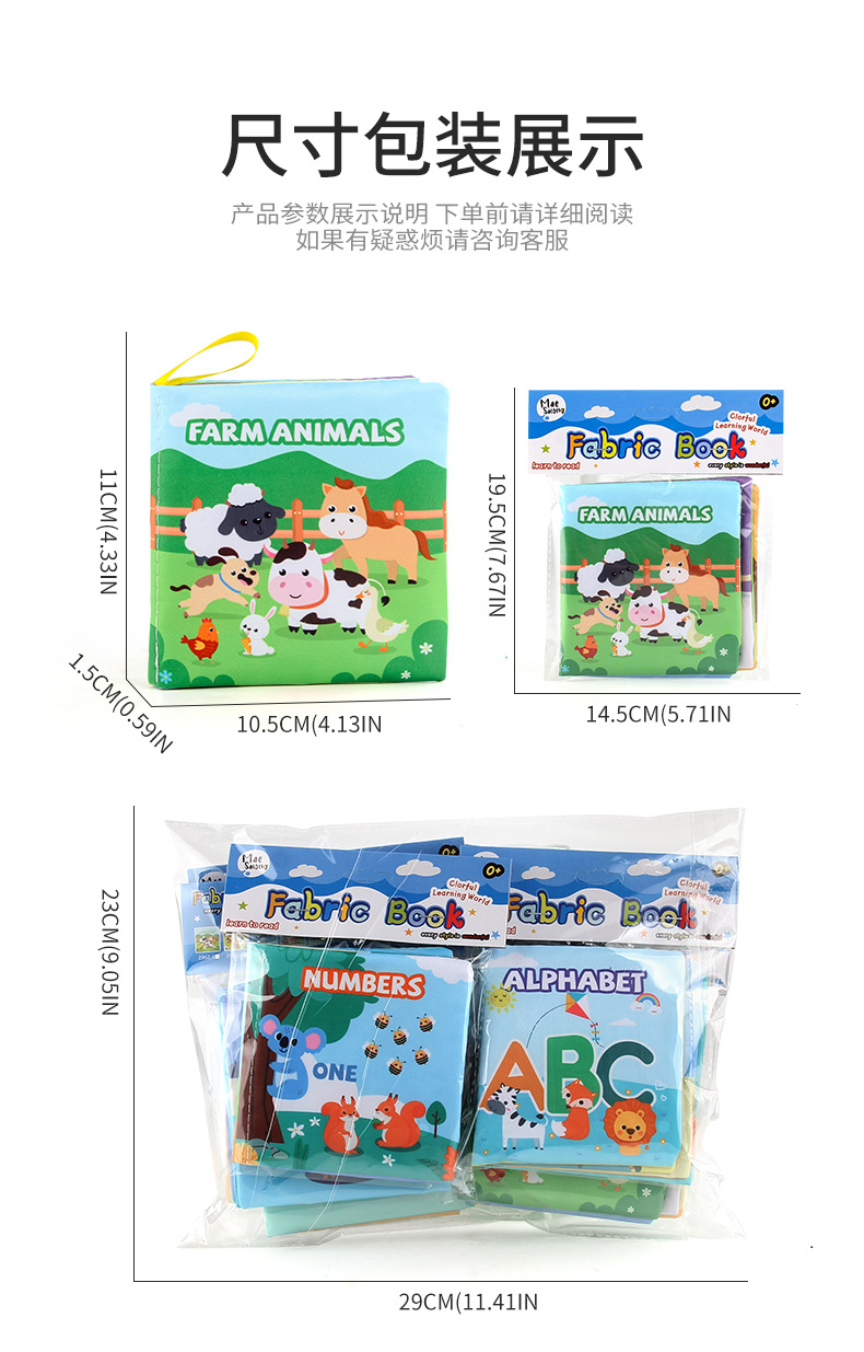 外贸立体婴儿布书早教玩具4页8面英文手掌书动物服装认知宝宝布书