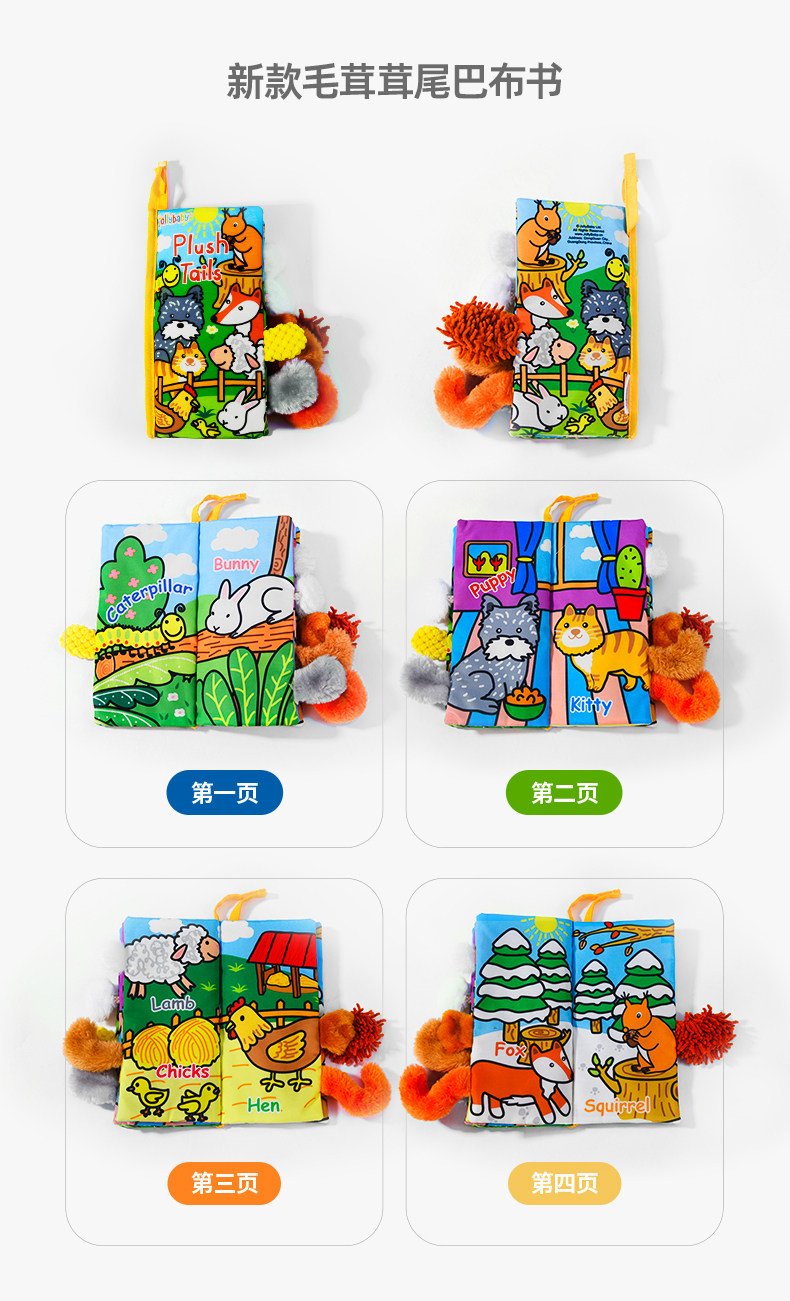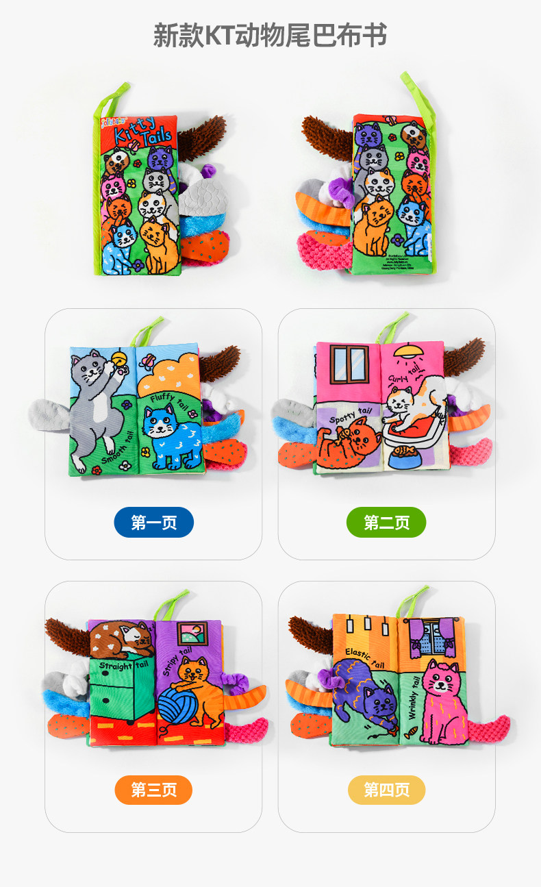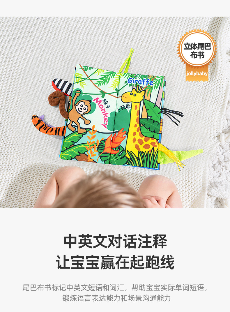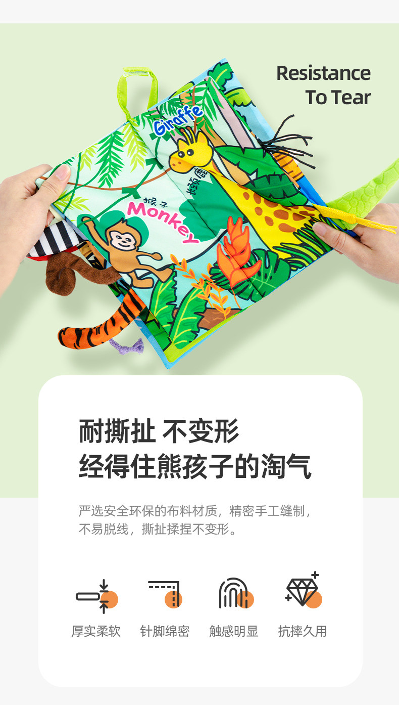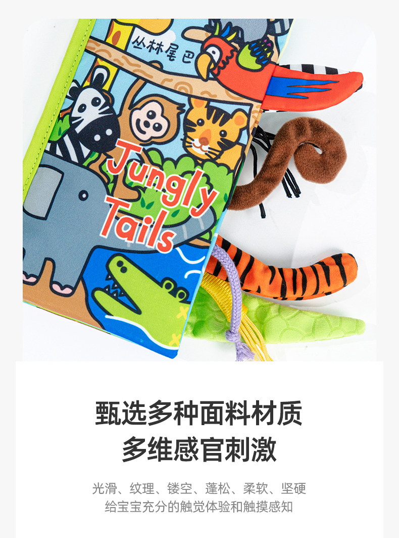 尾巴布书婴幼儿撕不烂可啃咬0-6个月宝宝趣味多维早教玩具书