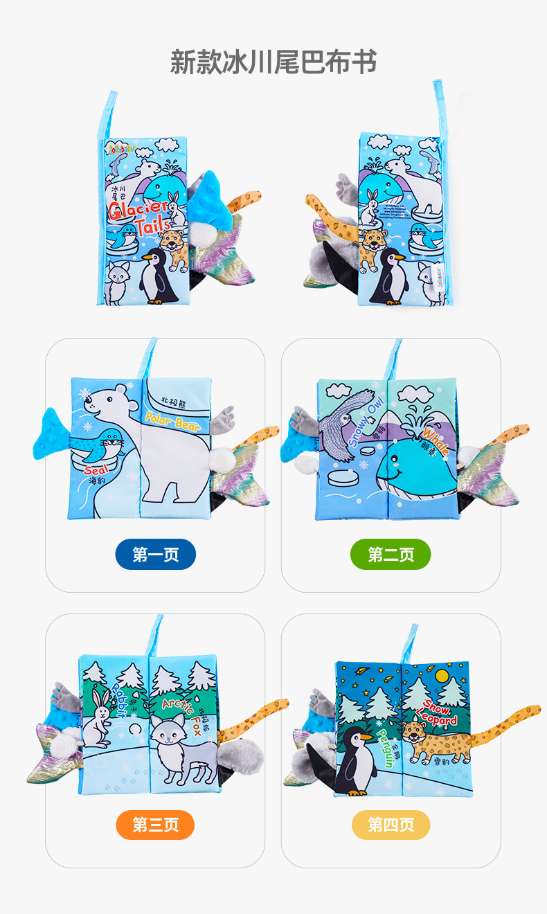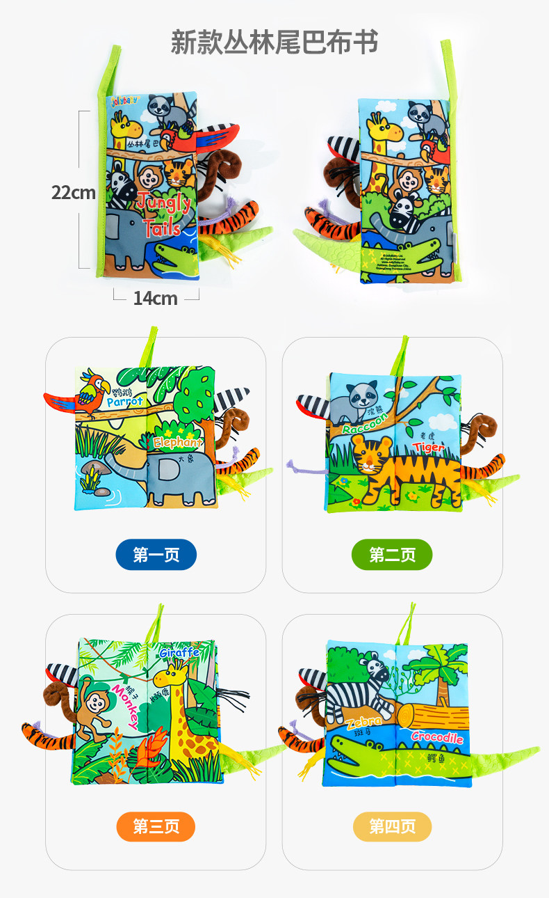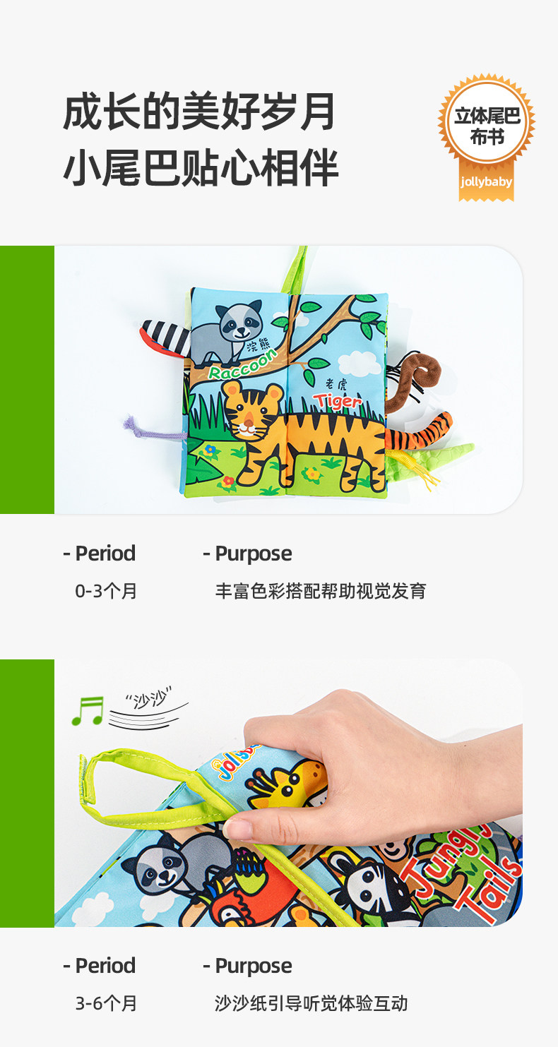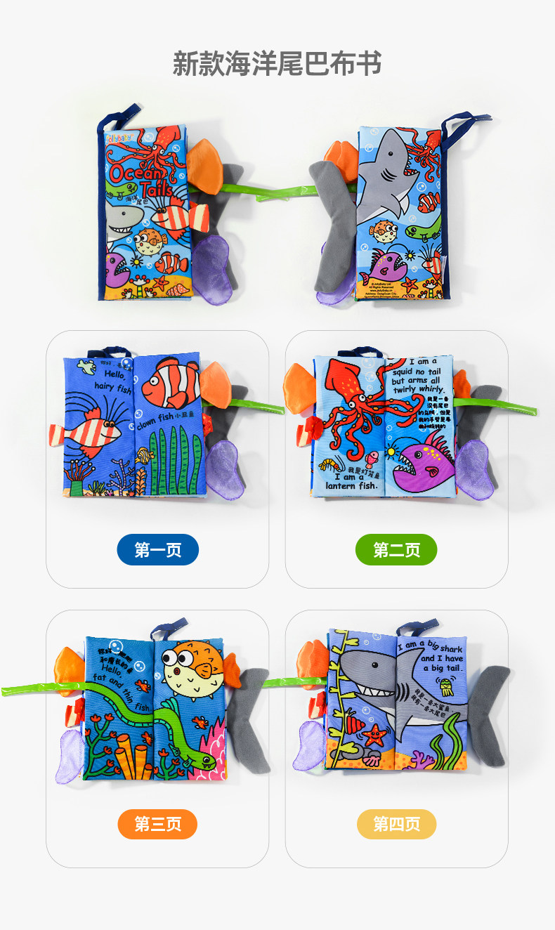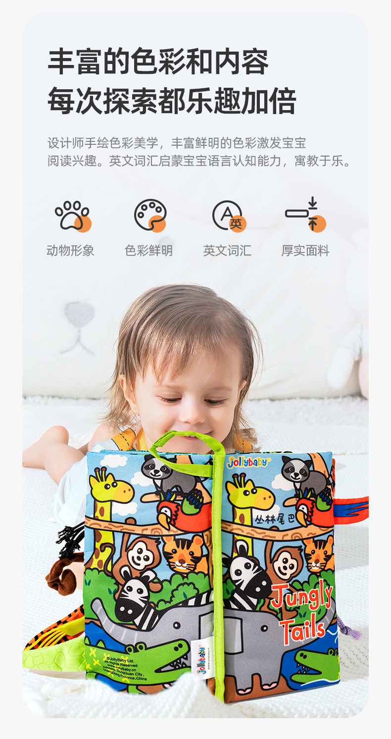 尾巴布书婴幼儿撕不烂可啃咬0-6个月宝宝趣味多维早教玩具书