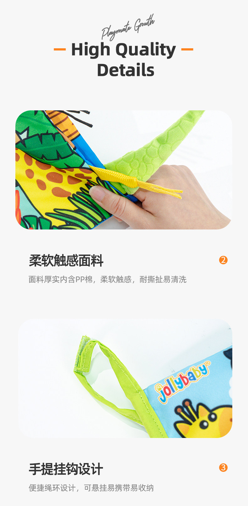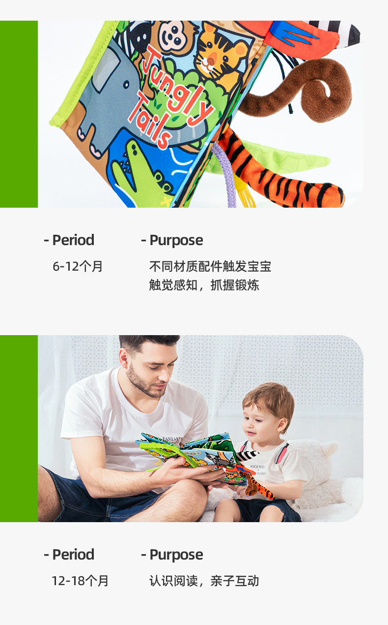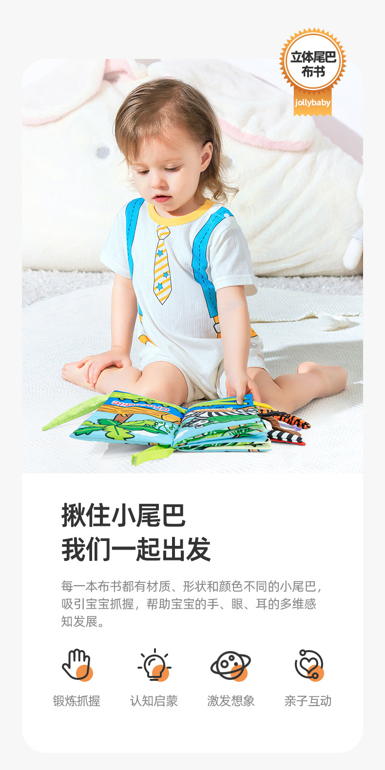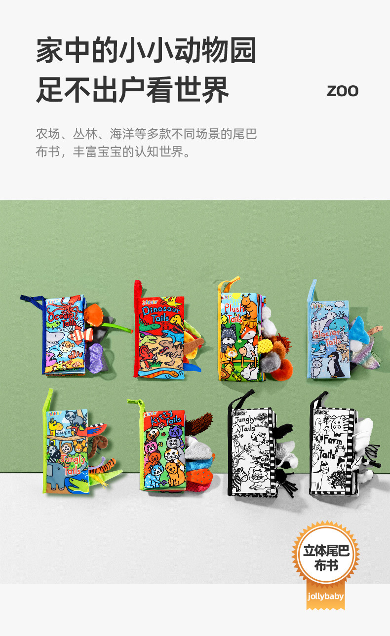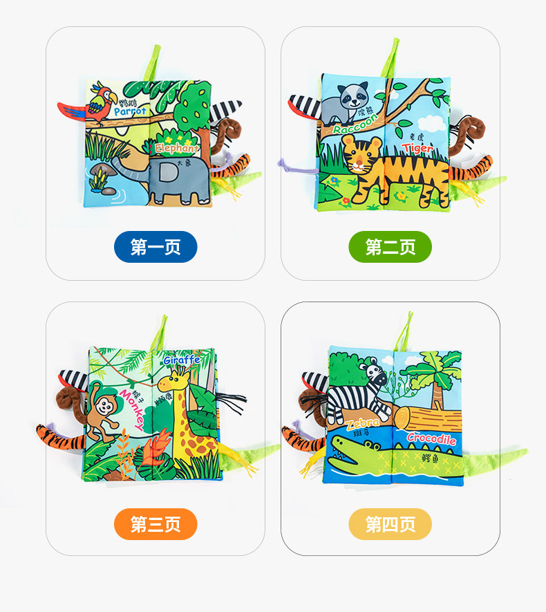尾巴布书婴幼儿撕不烂可啃咬0-6个月宝宝趣味多维早教玩具书