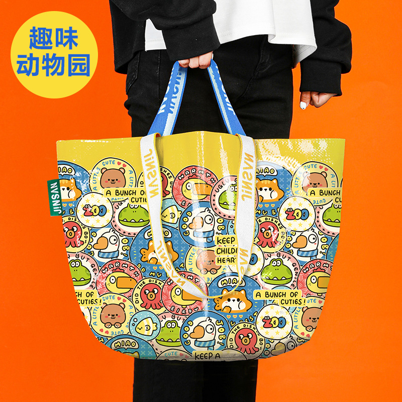 批发跨境礼品手提购物袋创意环保塑料编织袋大容量防水行李收纳袋