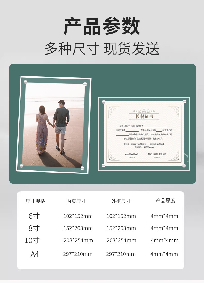 xybp亚克力相框桌面支架相框ins横竖可摆磁吸框架定制