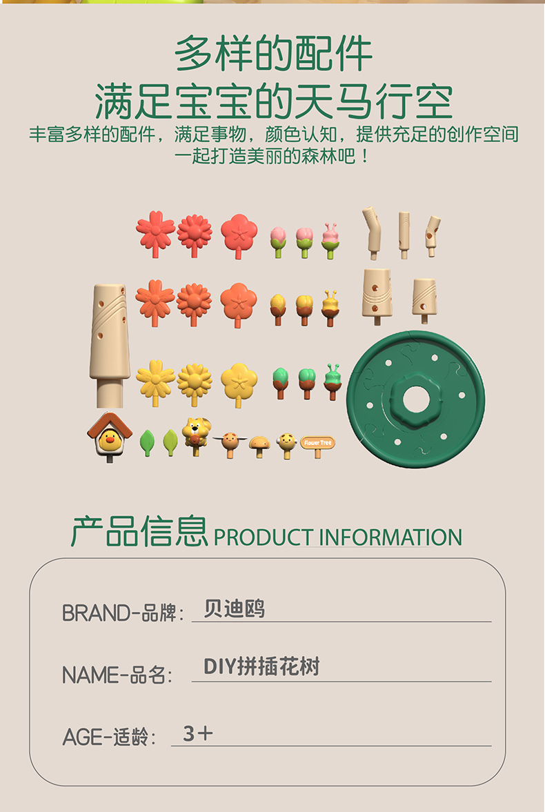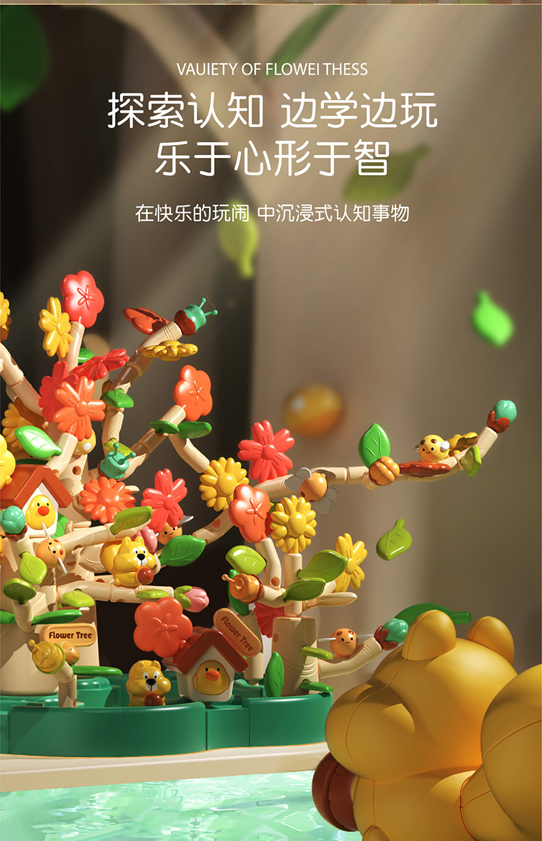 创意儿童积木拼插花树拼装积木玩具亲子互动DIY花园积木益智玩具