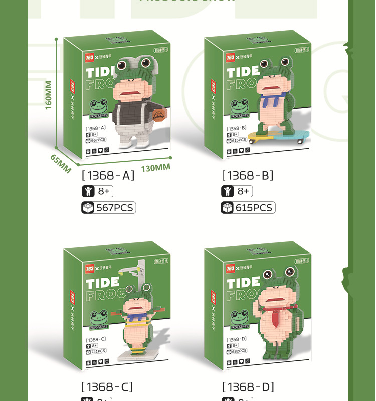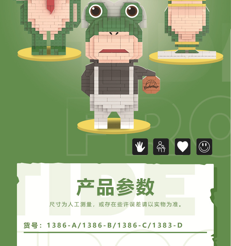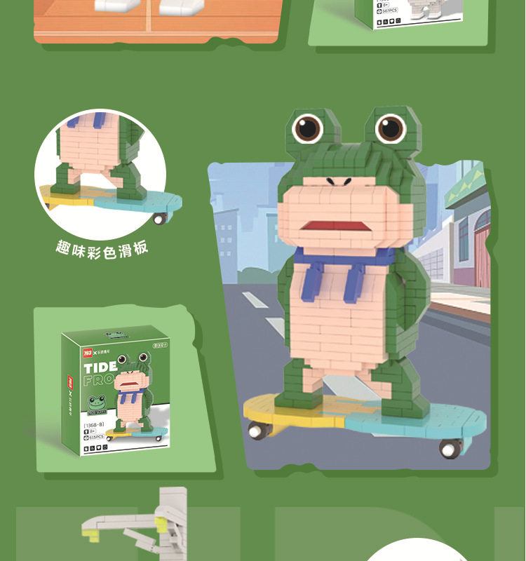 新品网红青蛙积木兼容乐高赖克宝蛤蟆青蛙崽益智拼装玩具批发代发