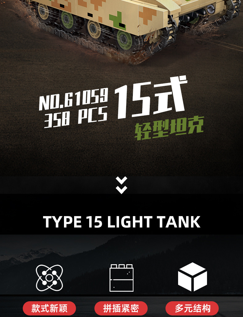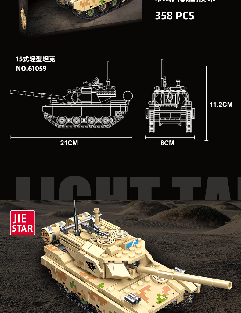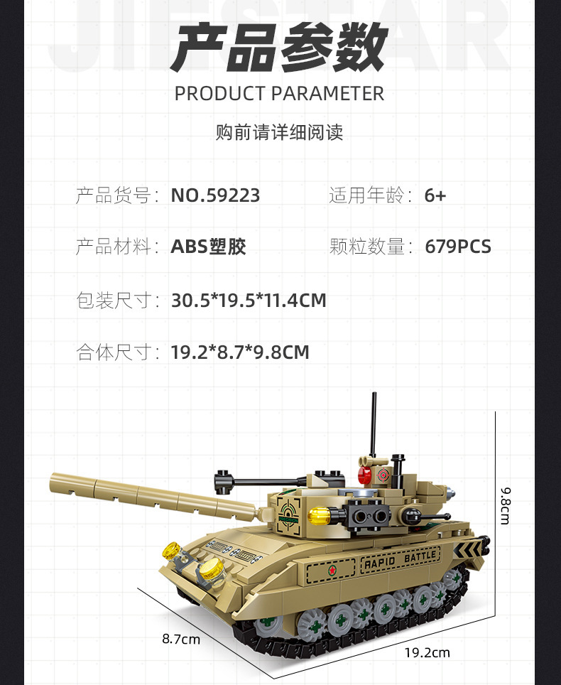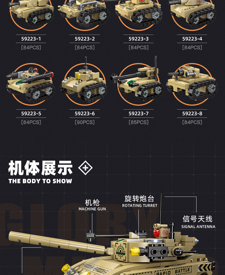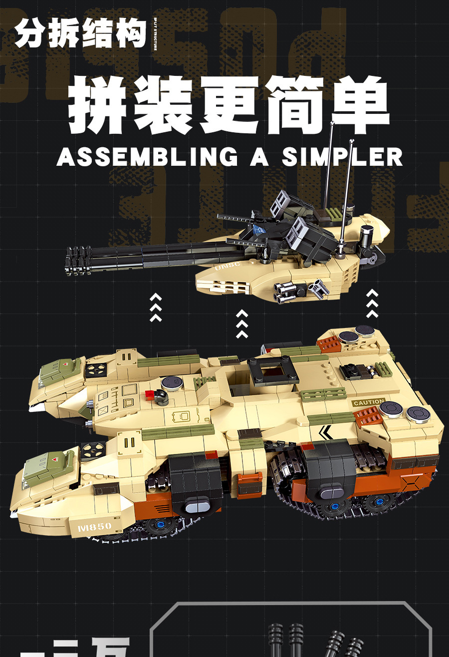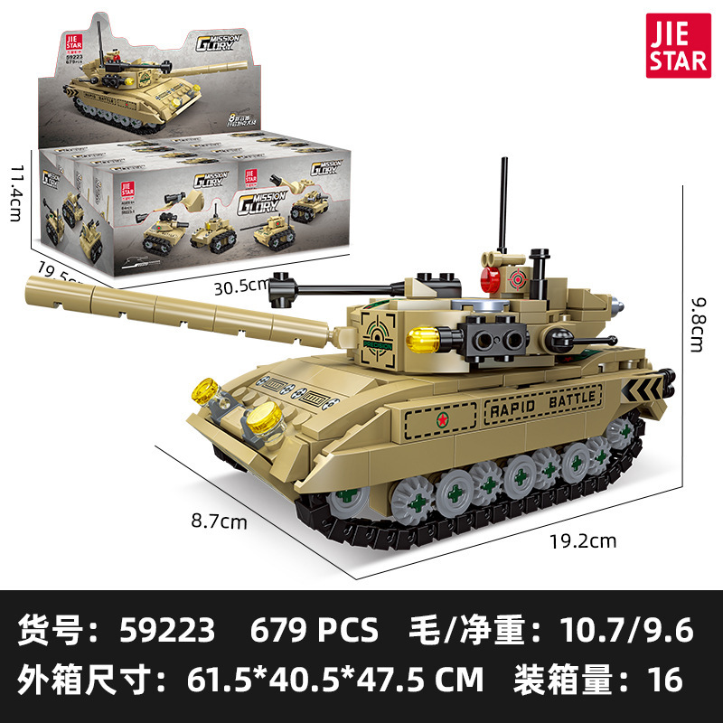荣耀使命系列M850灰熊坦克模型儿童智力拼搭组装DIY积木玩具跨境