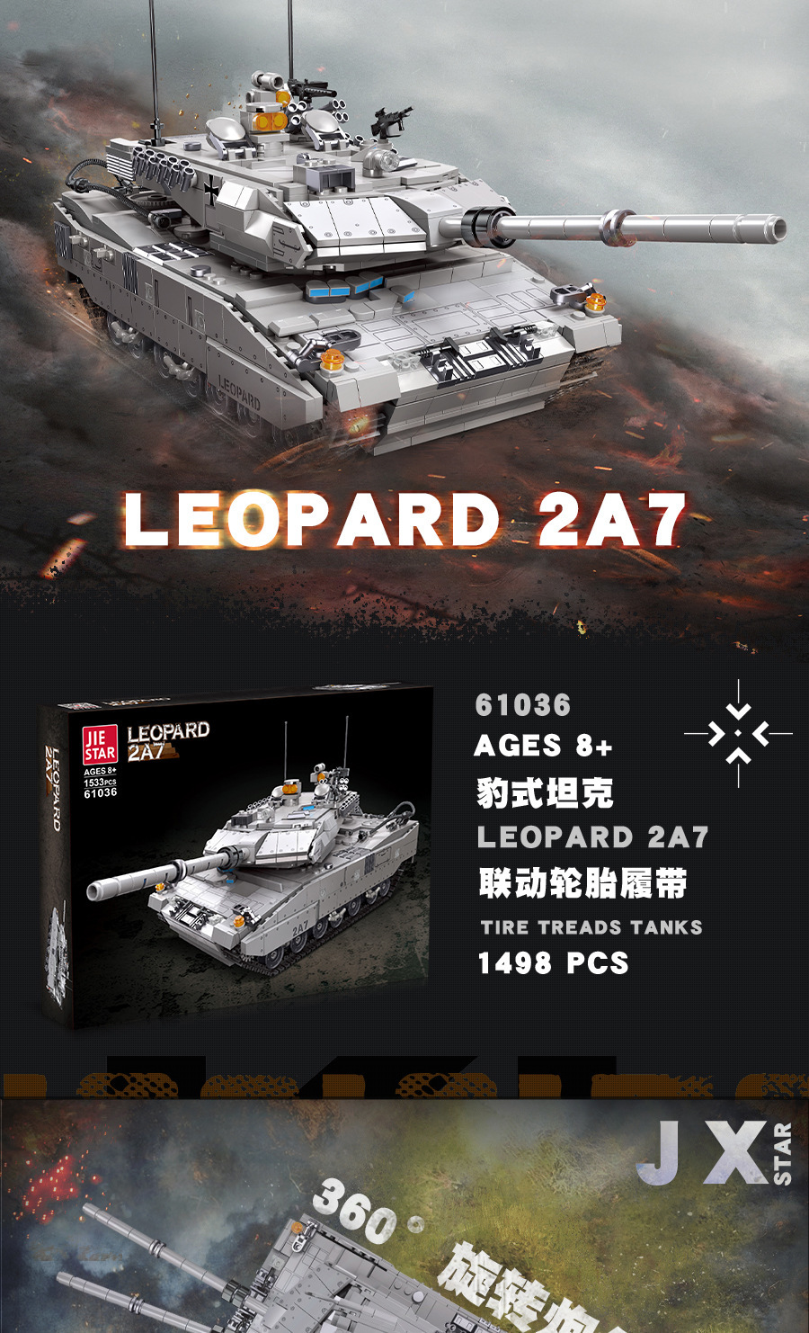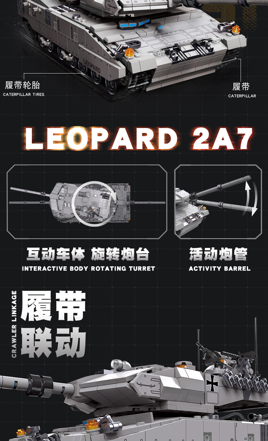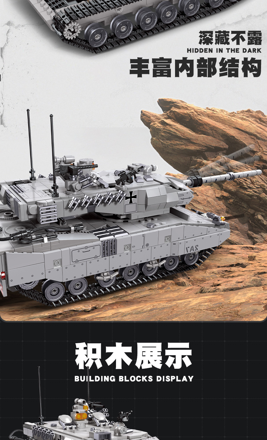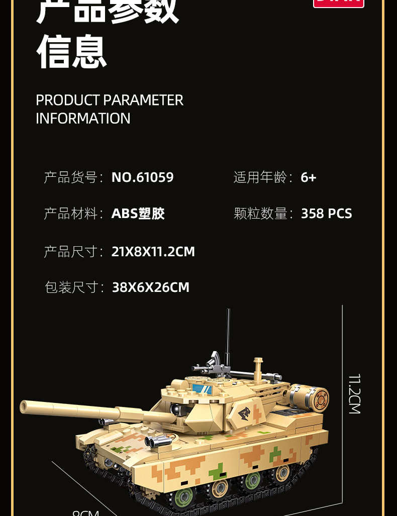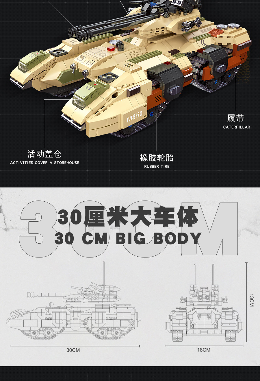 荣耀使命系列M850灰熊坦克模型儿童智力拼搭组装DIY积木玩具跨境