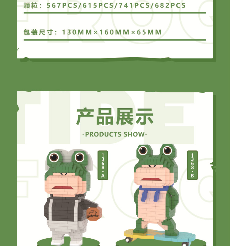 兼容乐高网红青蛙微颗粒积木儿童男女孩益智拼装玩具送礼批发代发