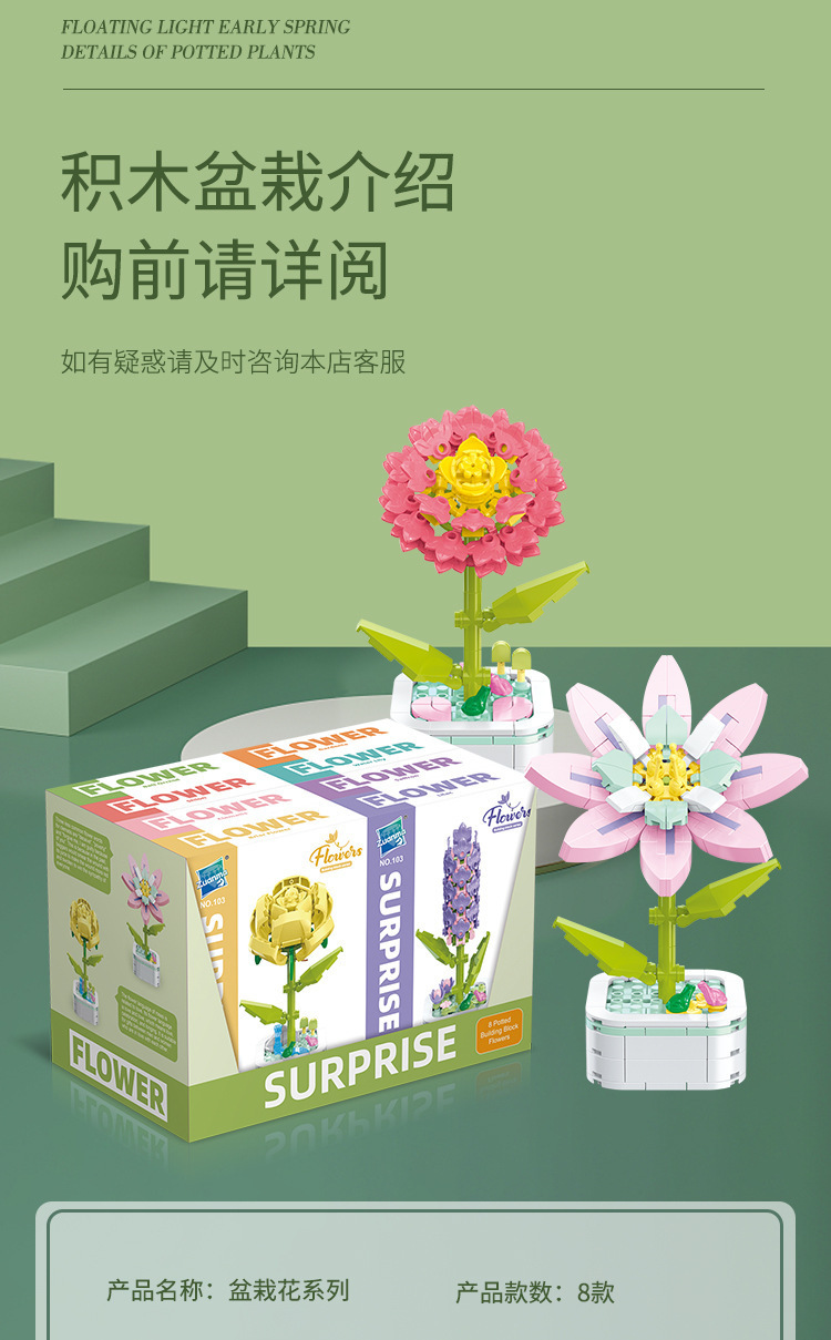 兼容乐高积木花朵玩具女孩系列女生小摆件向日葵拼装玫瑰永生花