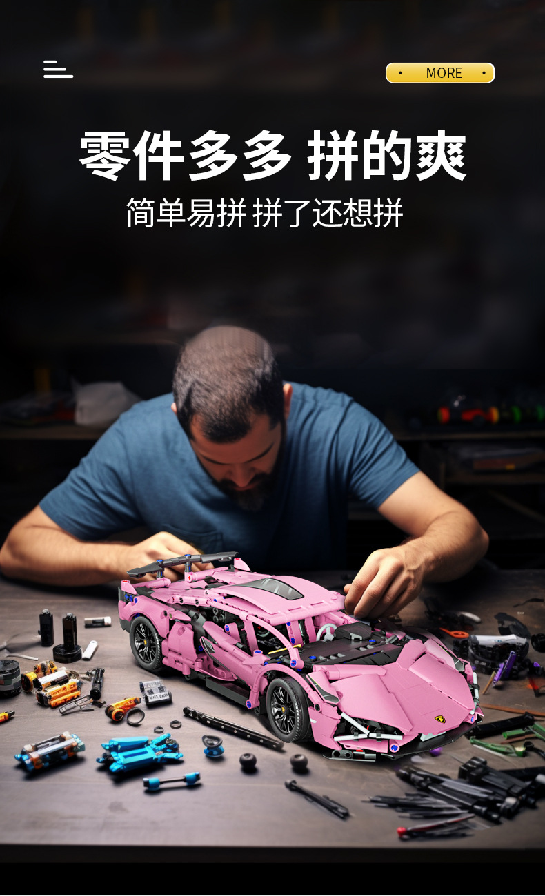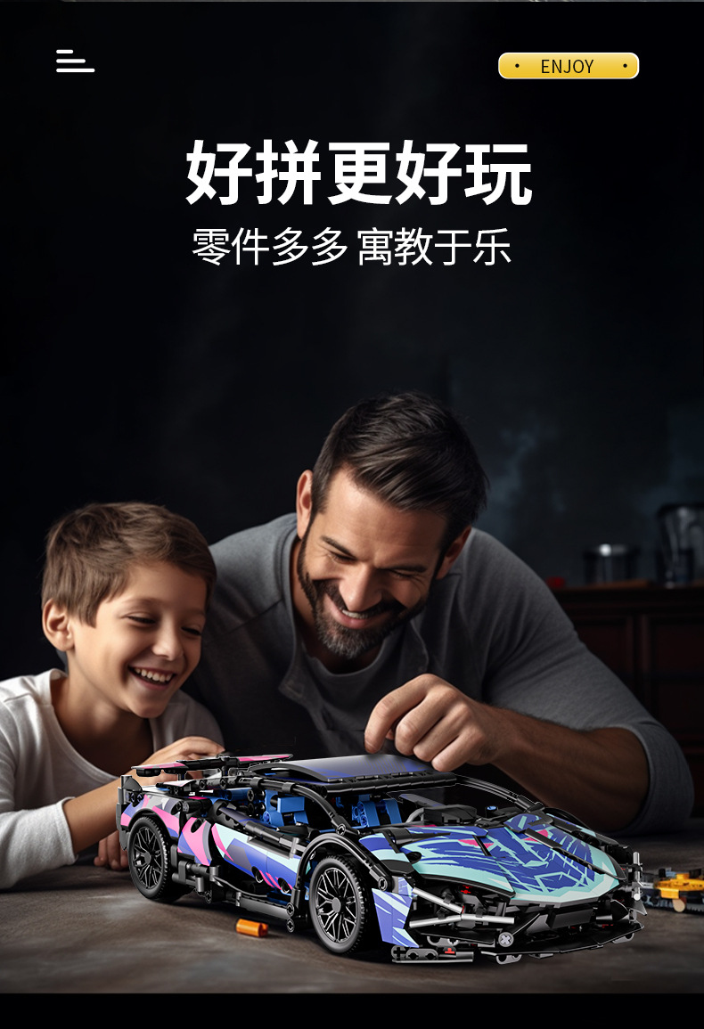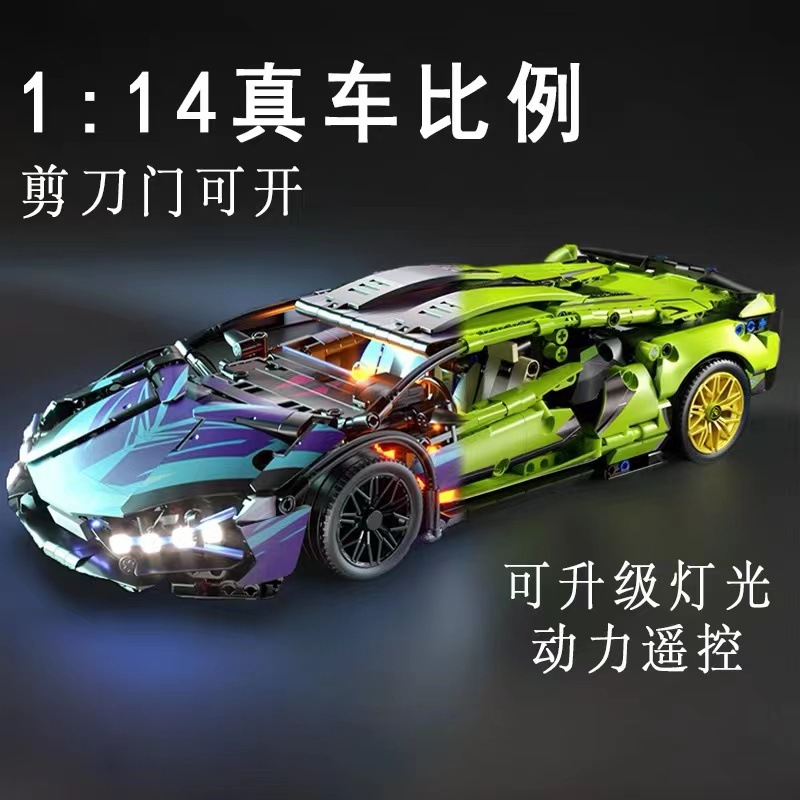 2024新款赛博兰博积木益智拼装模型遥控超跑汽车男孩玩具机械赛车