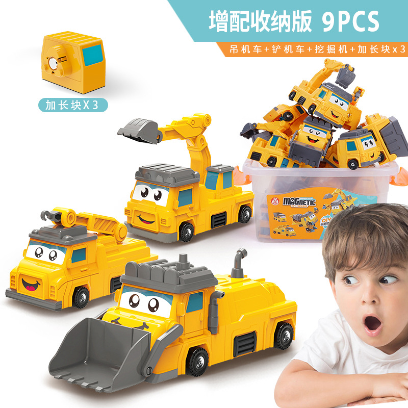 新款儿童玩具磁力合体变形机器人汽车拼装工程车海陆空积木益智1