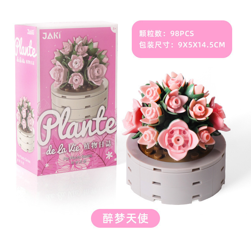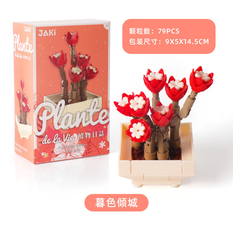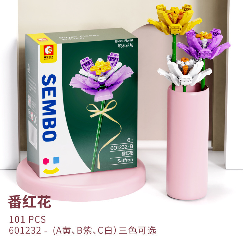 跨境永生玫瑰花束向日葵摆件兼容乐高益智拼装积木玩具礼物批发