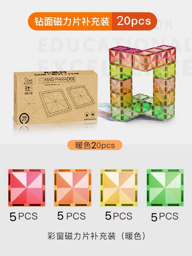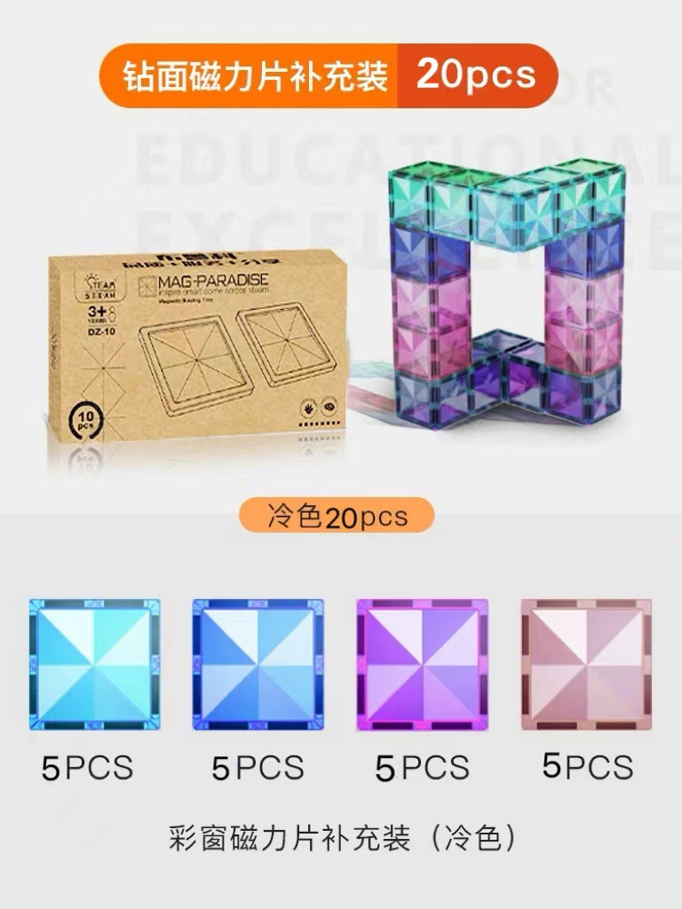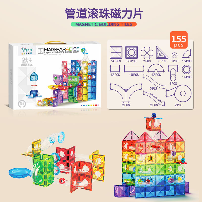 钻面彩窗磁力片儿童益智玩具拼装轨道管积木男女孩强磁拼图礼物