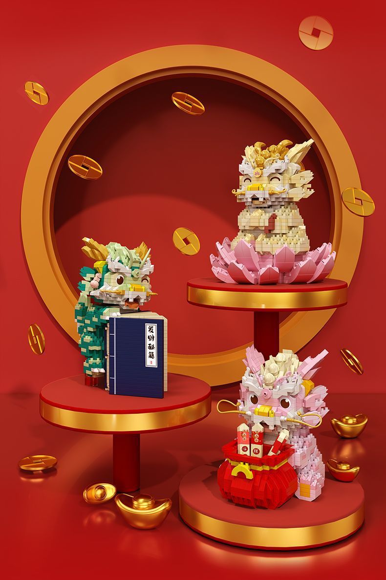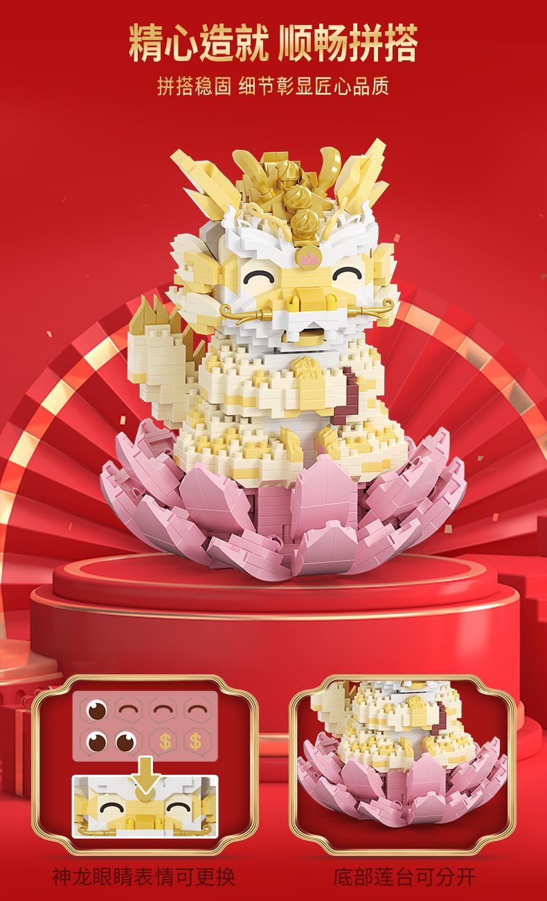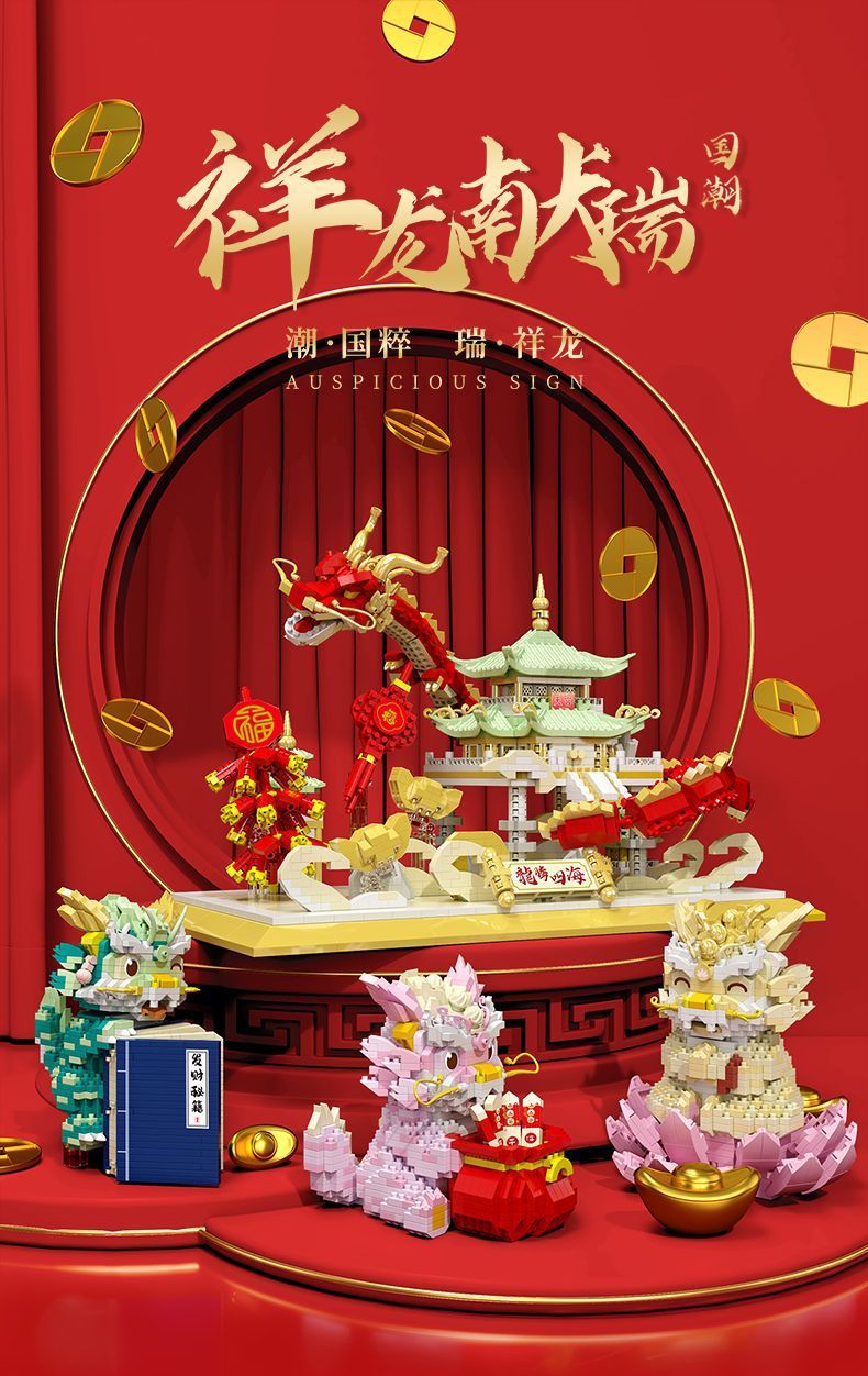 兼容乐高国潮舞龙祥龙献瑞新年积木摆件益智拼装机构礼品跨境批发
