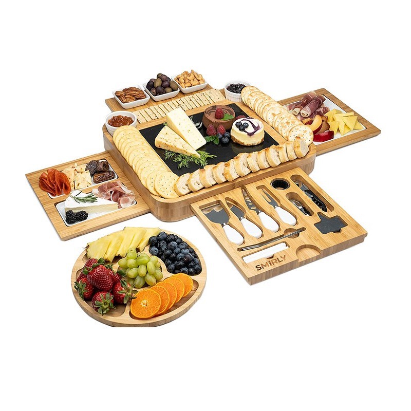 【质享家】跨境热卖带抽屉芝士板 竹制砧板现货工厂家用奶酪菜板